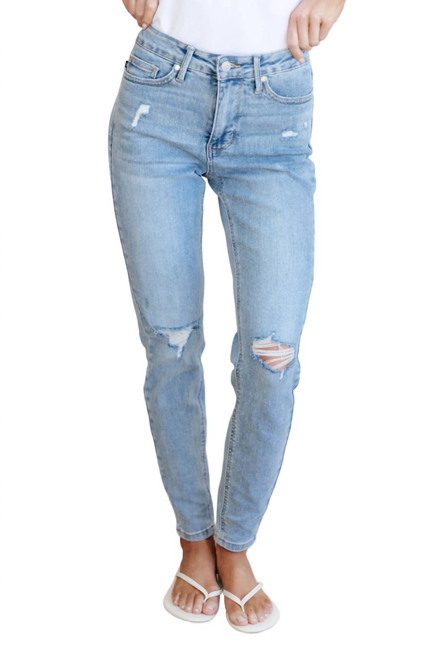 Judy Blue - Mid Rise Control Top Distressed Skinny Jeans