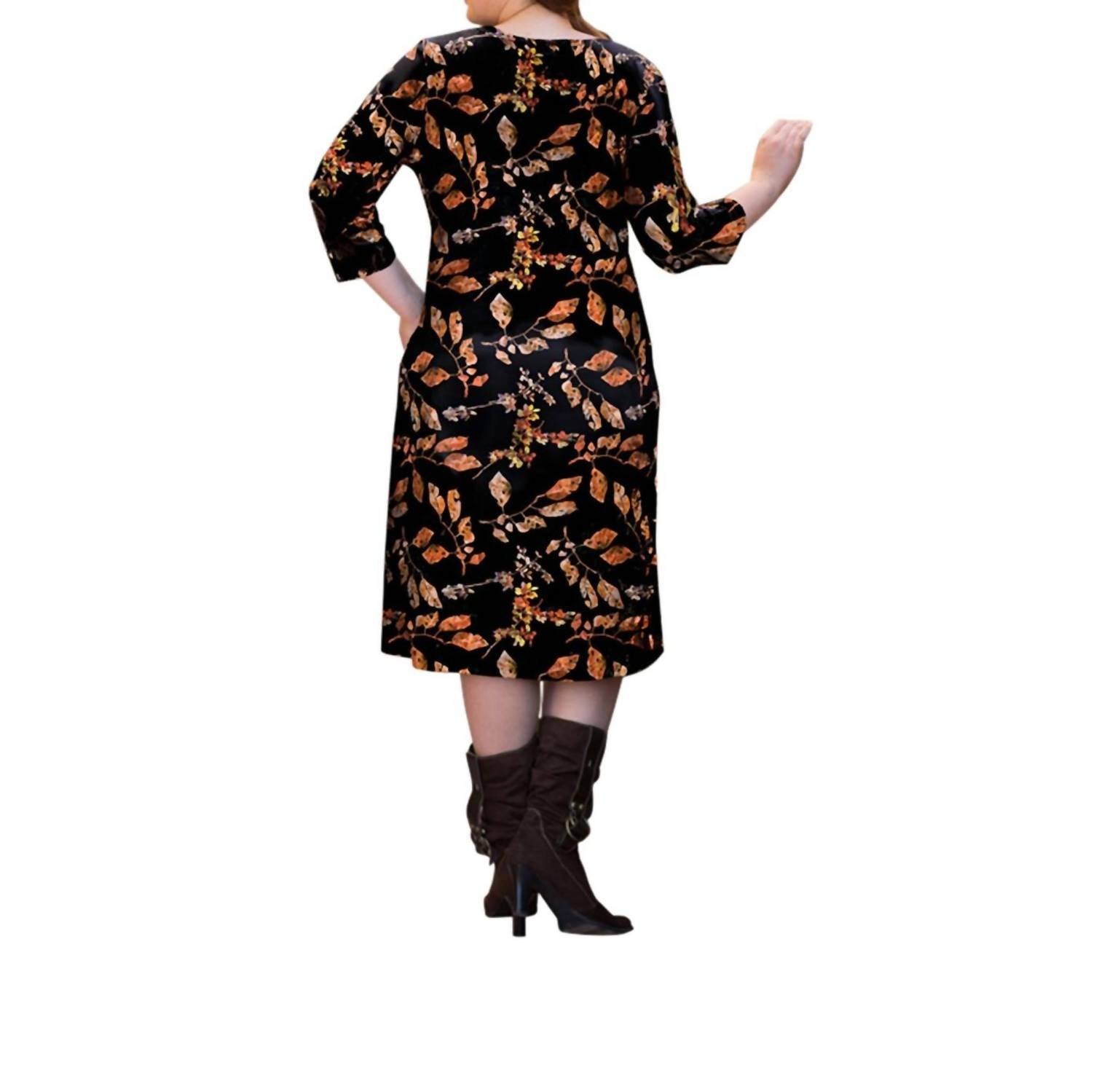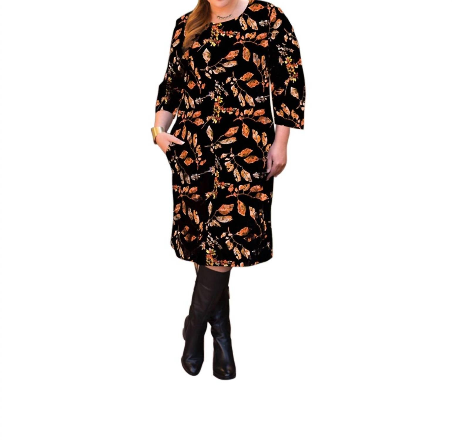 A midi dress so versatile, your options for wearing it are endless.This sheath dress features a leaf print and includes convenient pockets. With a scoop neckline, three-quarter sleeves, and a relaxed fit, it’s perfect for both day and night.​