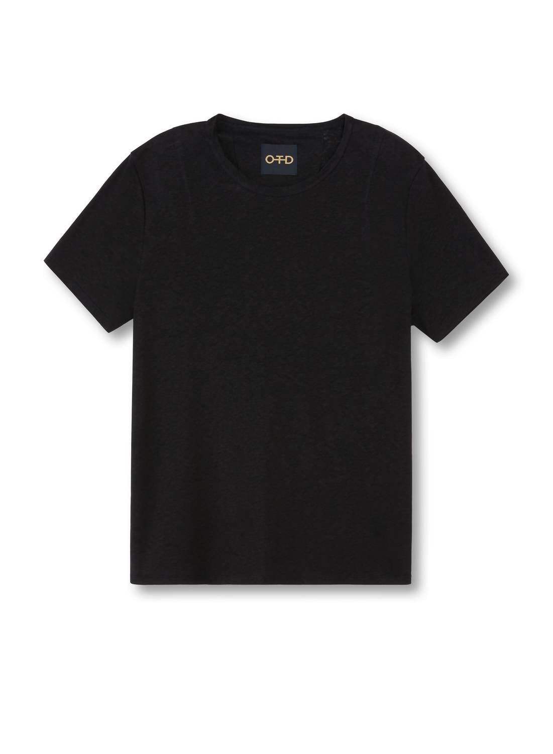 Look no further, you just found your perfect tee! A versatile wardrobe option for women in classic black with a bias cut crew neckline. Crafted from a soft linen blend, this short sleeve tee features a pull-on closure for ease of styling.