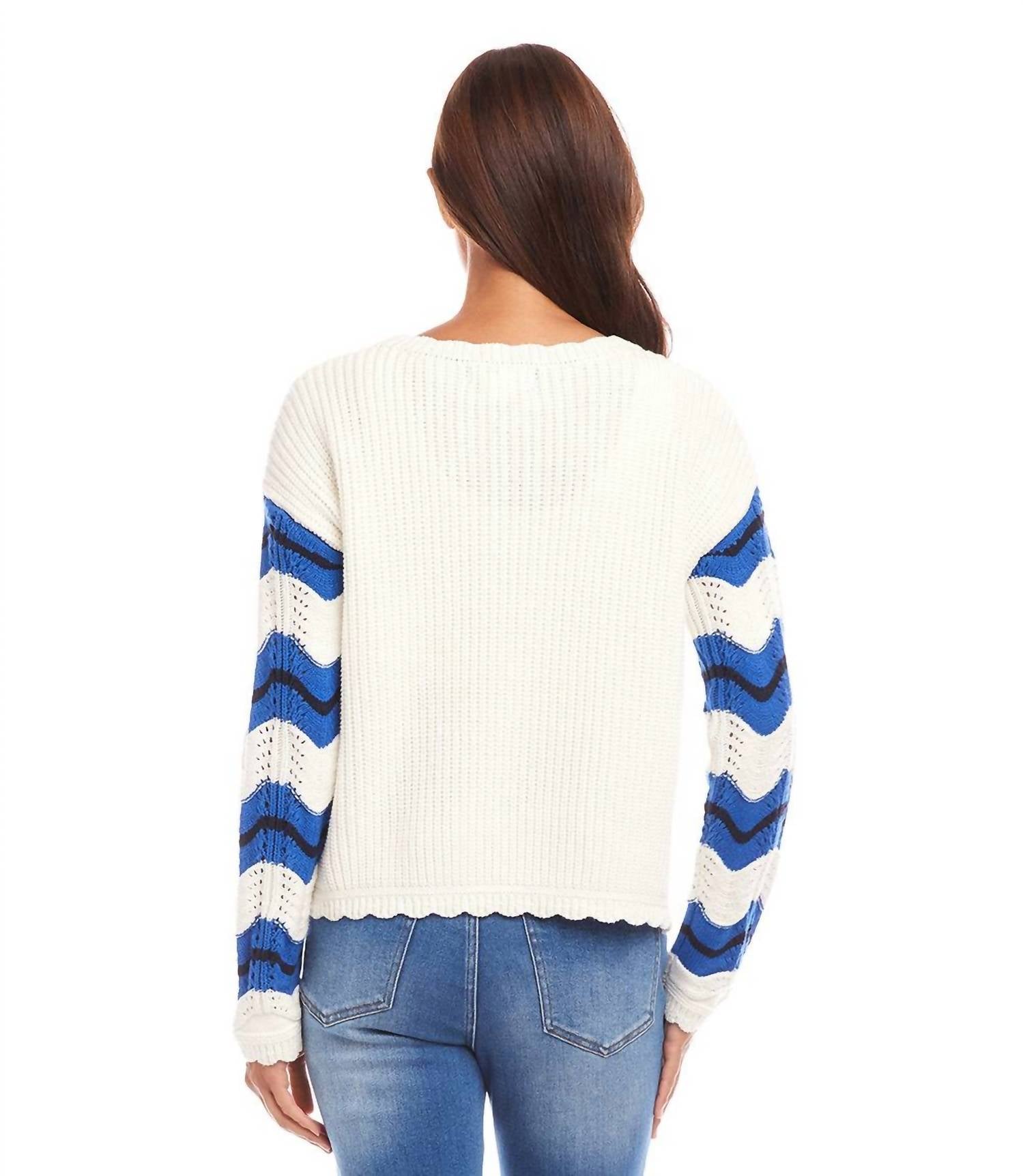 Experience the perfect blend of comfort and style with this trendy crew neck sweater, designed to effortlessly elevate your wardrobe. Pair it with your favorite denim and loafers for the perfect look. Introducing the Pointelle Zigzag Sweater by Karen Kane, a chic multi-color piece designed to add warmth and style to your fall wardrobe. This women's plus-size sweater features long set-in sleeves and delicate scalloped edge details, showcasing a patterned cotton blend crafted with contrast pointelle zigzag knitting. Made with 60% cotton and 40% acrylic, this sweater is imported and offers a comfortable crewneck fit with a convenient pull-on closure. For care, dry clean only to maintain its boho chic aesthetic for any vacation occasion or Easter holiday.