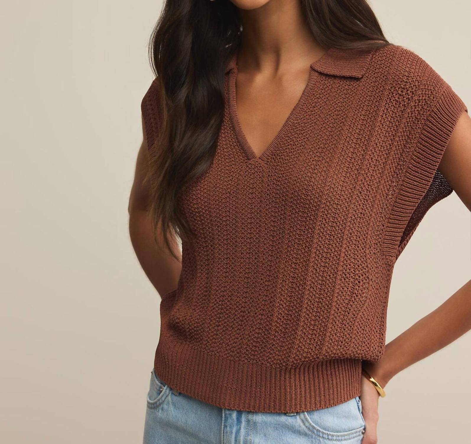 Elevate your holiday wardrobe with the textured Lauden Polo Top by Z Supply, perfect for a minimalist spring style. Featuring short sleeves, this lightweight nylon blend blouse has a flattering V-neck with a collar, offering a regular fit. Made from a cotton nylon rope yarn with 65% acrylic and 35% nylon for maximum comfort. Designed in a rich brown shade and finished with a convenient pull-on closure. Enjoy this women’s blouse at your next Thanksgiving gathering.