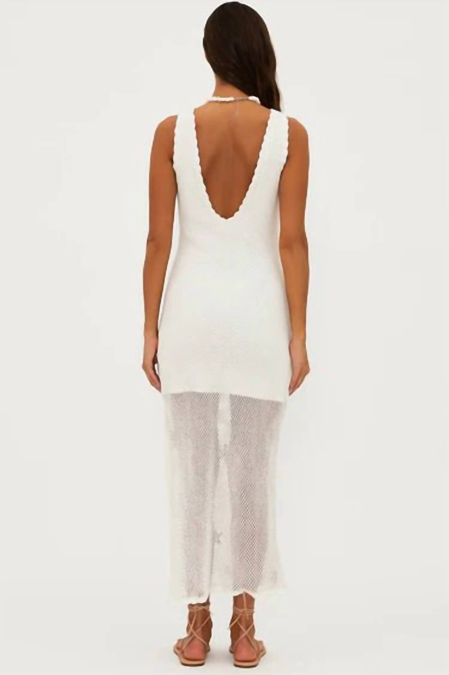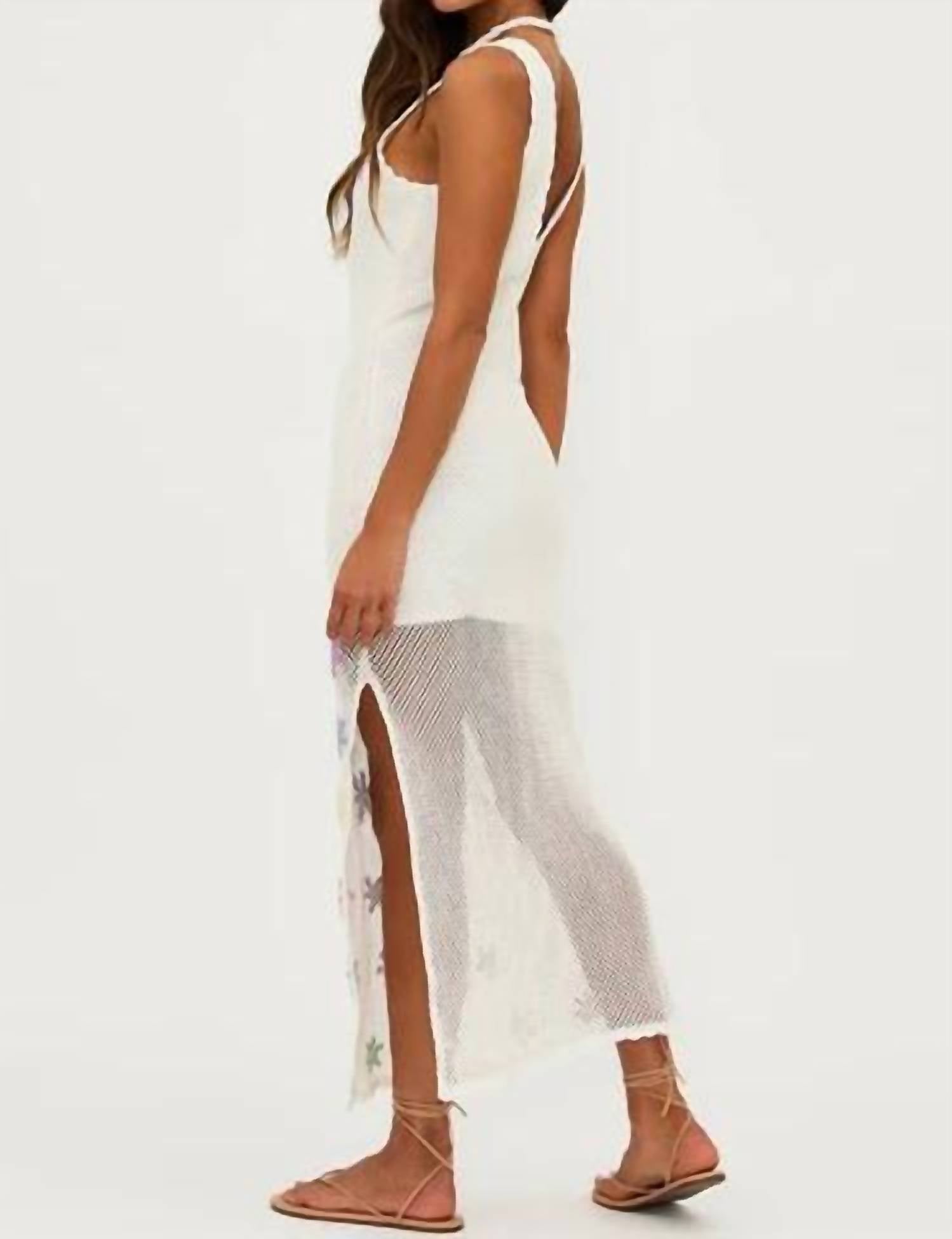 Just add slides or mules and you are good to go. Discover the T Diana Midi Dress by Beach Riot, a charming addition for a perfect beach day. This sleeveless midi dress, made from 100% cotton, features a beautifully embroidered floral pattern on an open-knit design. The scoop neckline is accented with a scalloped hem, and the dress has a lined bodice to enhance comfort. Closure: Pull on. Enjoy this stylish and breathable choice in classic white.
