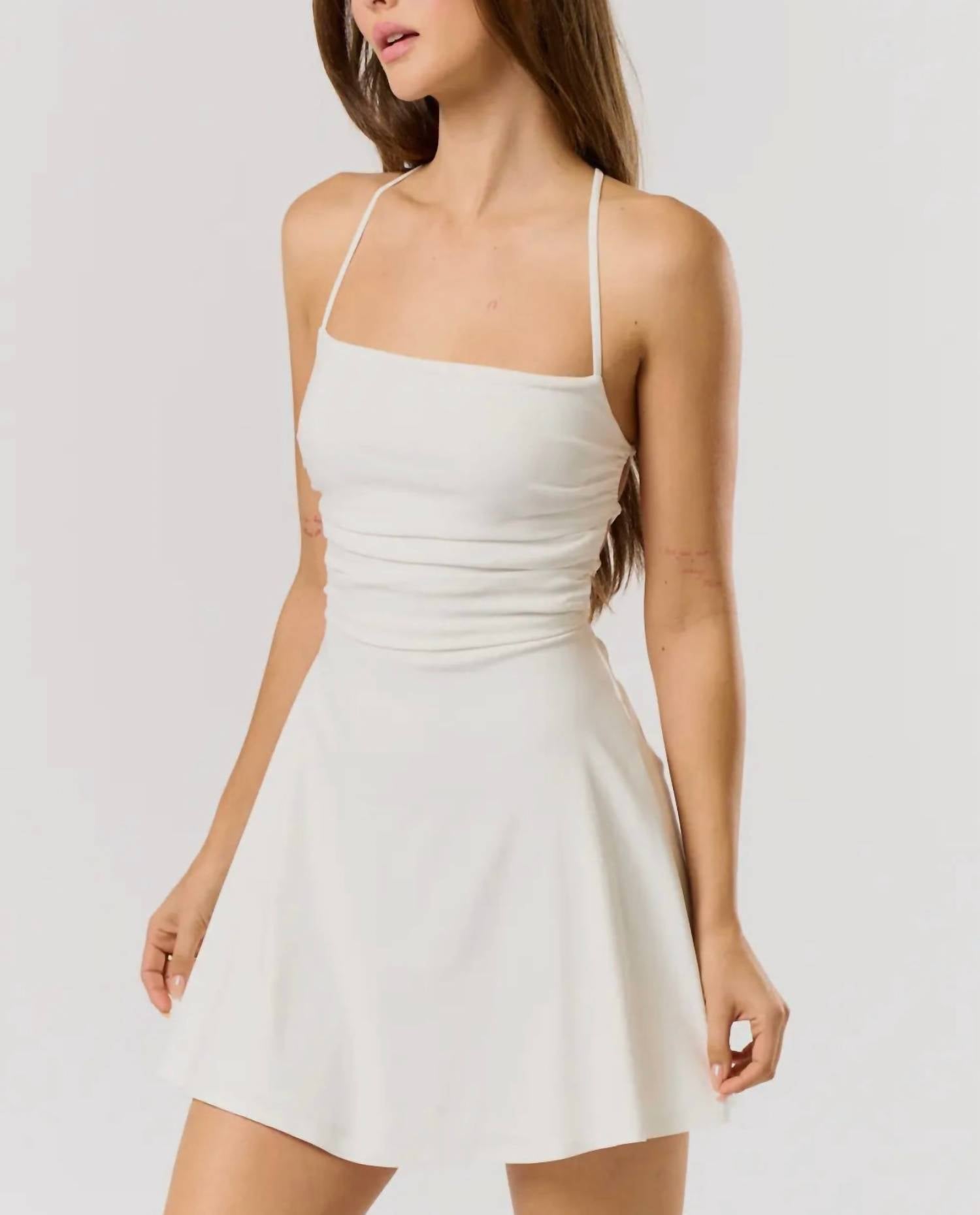 The kind of easy and flattering dress you'll be reaching for all season long. Introducing the Bailey Lace Up Back Mini Dress by Blue Blush, a chic addition to your wardrobe designed for versatile wear. Featuring spaghetti straps and crafted from a blend of 64% Rayon, 34% Nylon, and 2% Spandex, this A-line mini dress offers both comfort and style. With a flattering square neckline and a unique lace-up cross-back design, it's ideal for spring occasions or a Thanksgiving dinner party. Closure is through a tie, and it can be conveniently machine washed. Model is 5'9" wearing a size small and the fit is true to size.