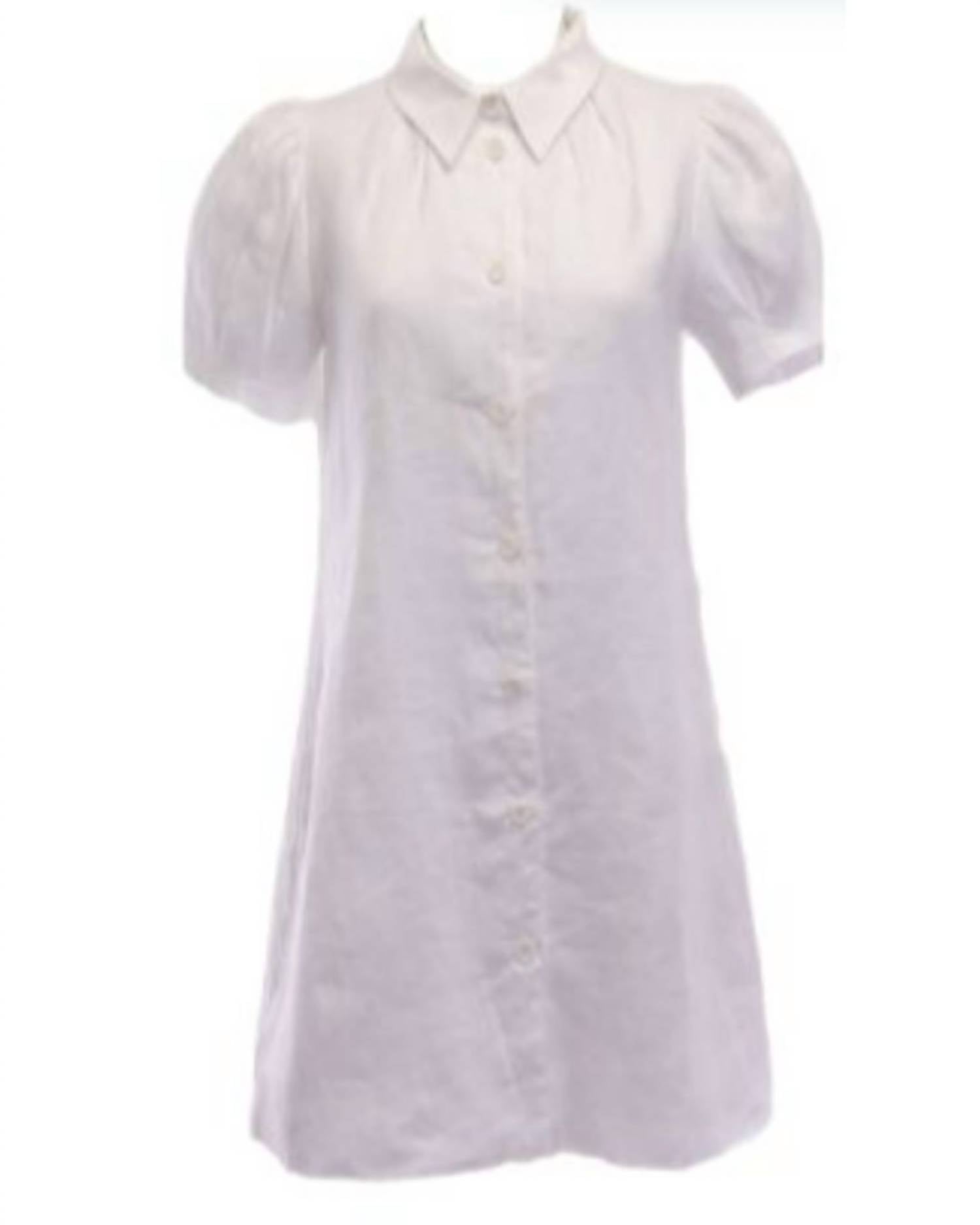 Introducing the Linen Button Down Mini Dress by Dolce Cabo, a blend of style and comfort for your summer wardrobe. This solid white dress features short puff sleeves and a classic shirt collar, making it ideal for vacation wear. Crafted from breathable linen, its A-line silhouette ensures a relaxed fit. Closure: Button closure. Care instructions: Dry clean only. Perfect for a minimalist look whether you're dressing up for Valentine's Day or enjoying a casual stroll.