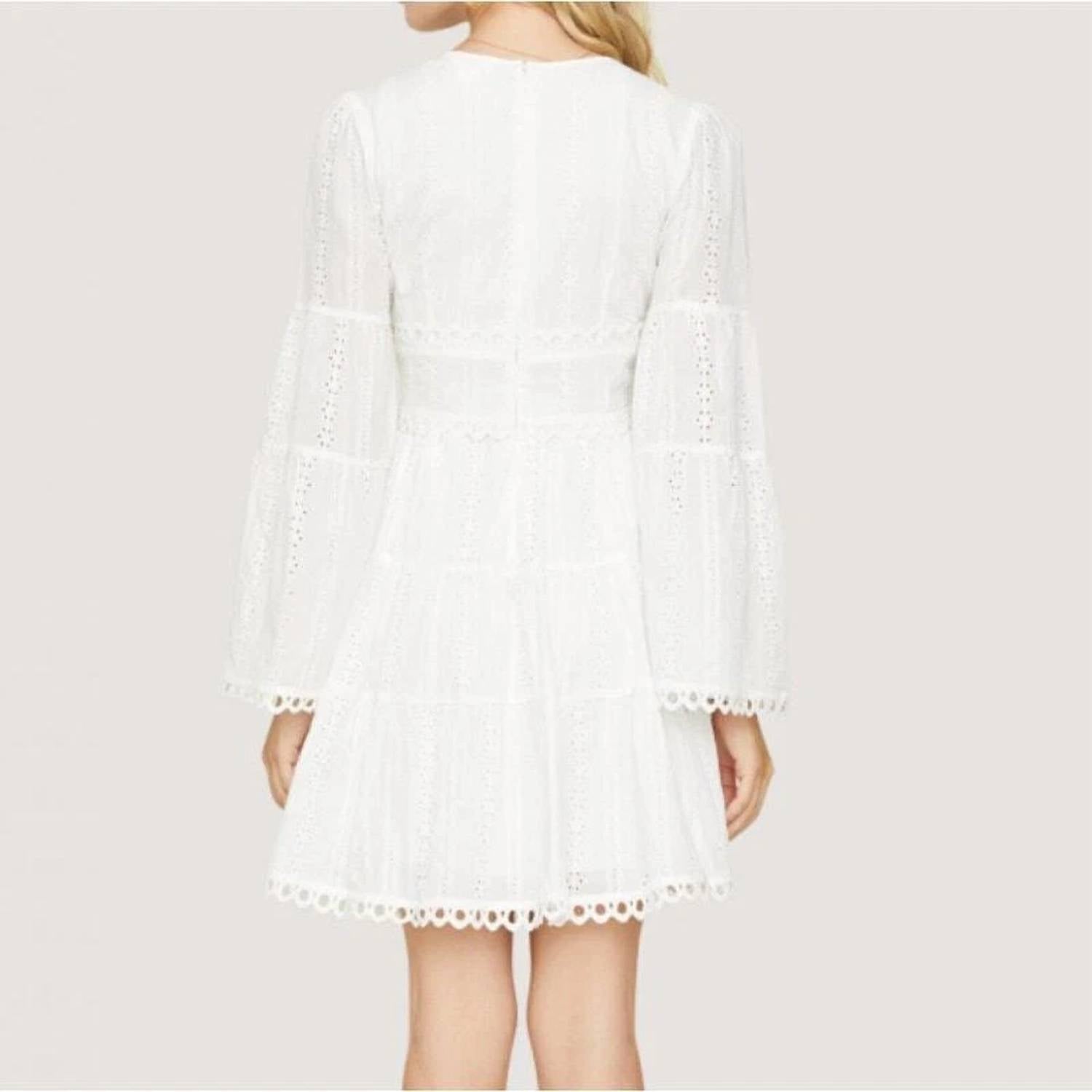 Unveil the elegance of the Everlasting Love Long Sleeve Dress by LOST + WANDER, crafted to make you feel beautiful with its exquisite design. Featuring long, flared sleeves, this mini dress in solid white boasts a sultry v-neckline and delicate floral white eyelet with lace-trimmed details. Made from 100% cotton, it ensures comfort and breathability. Zip closure. Hand wash and line dry.