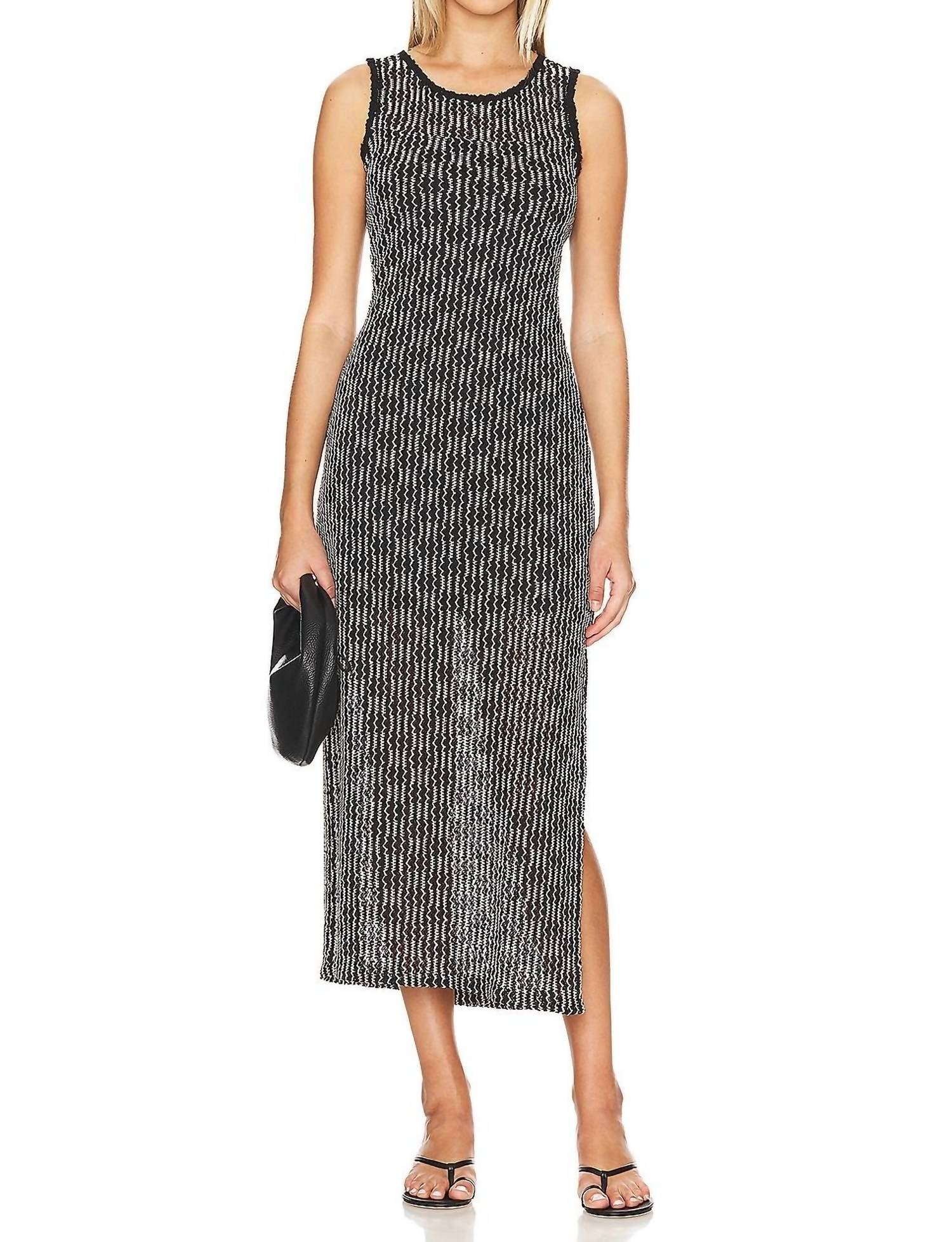 Just add slides or mules and you are good to go. Introducing the Nyssa Dress by STEVE MADDEN, a stylish sleeveless piece perfect for any occasion. Crafted from a comfortable cotton/polyester blend, this midi-length sheath dress features a textured pattern for added flair. With a crewneck neckline, it offers a flattering silhouette that's both playful and sophisticated. Enjoy easy wearability with its pull-on closure.