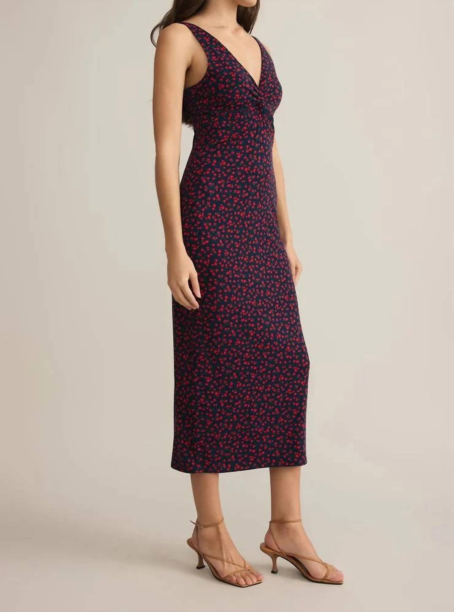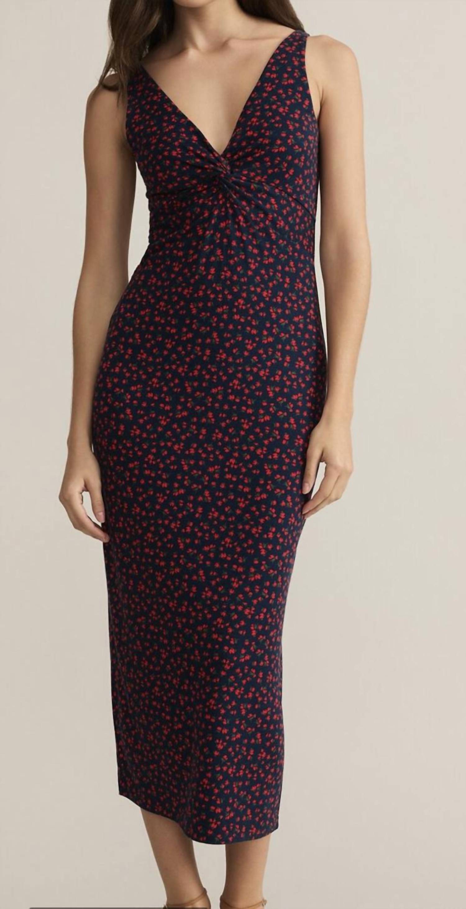 Just add slides or mules and you are good to go. Presenting the Eleve La Rosa Ditsy Midi Dress by Z Supply, a sophisticated piece perfect for an evening event. Designed with spaghetti straps and a flattering V-neck, this dress is made from a midweight blend of 90% Rayon and 10% Spandex, offering a fitted bodycon silhouette. Featuring a boho chic floral pattern in eclipse color, it adds elegance to any summer occasion. Closure: Tie closure. Care: Machine wash and lay flat to dry.