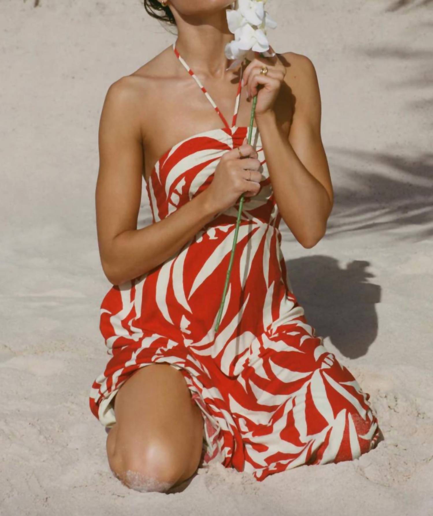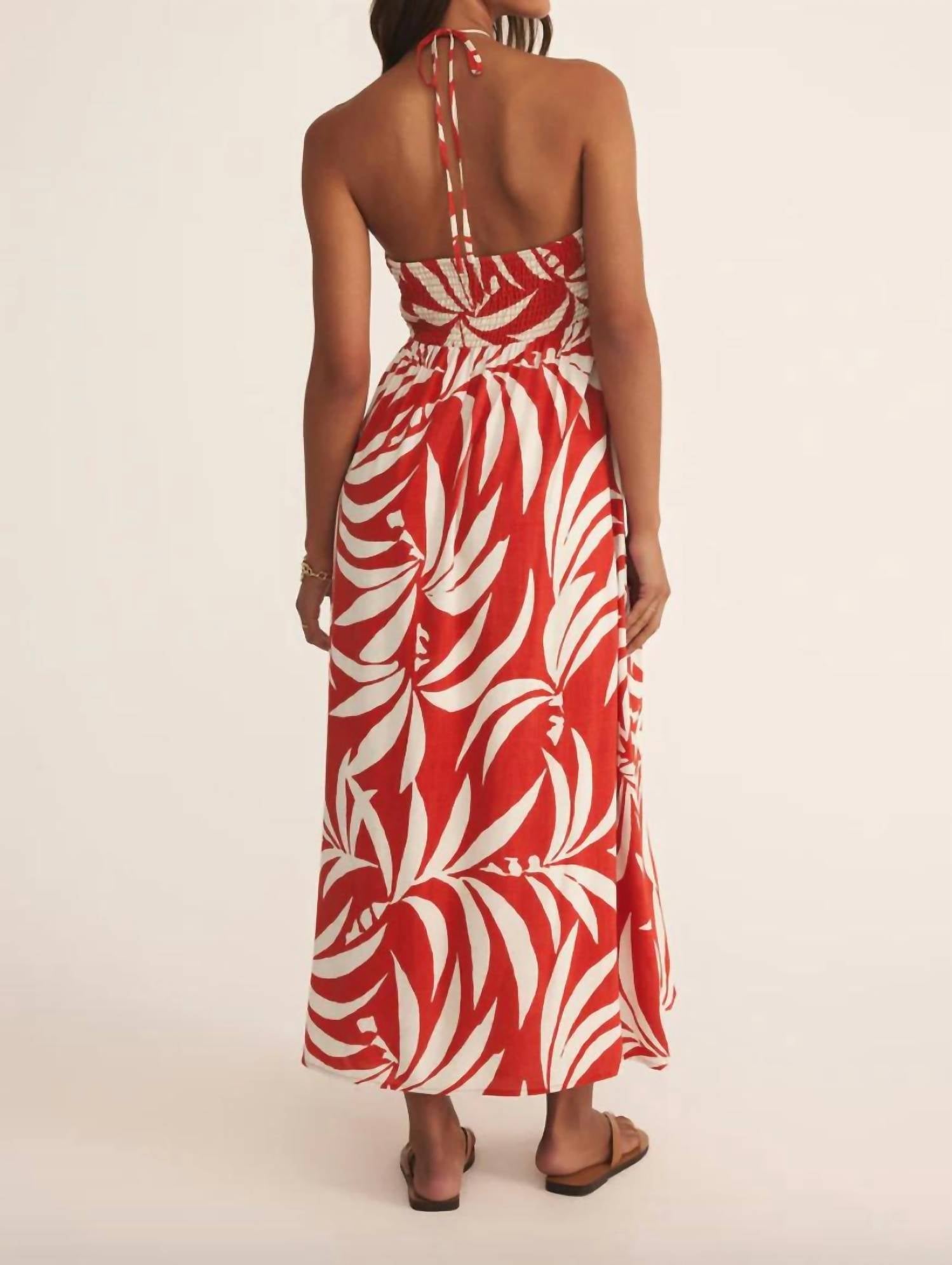 The perfect length dress does exist. Discover the Elodi Palm Floral Midi Dress by Z Supply, a perfect blend of style and comfort for your summer wardrobe. This strapless, bandeau design features a relaxed A-line silhouette in a striking Cabana Red floral pattern. Crafted from 85% viscose and 15% linen, with a 100% rayon lining, it offers a midi-length fit fully lined for added elegance. Closure: Pull on. Care instructions: Hand wash, lay flat to dry.