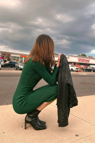 525 America - Emerald Ribbed Turtleneck Midi Dress