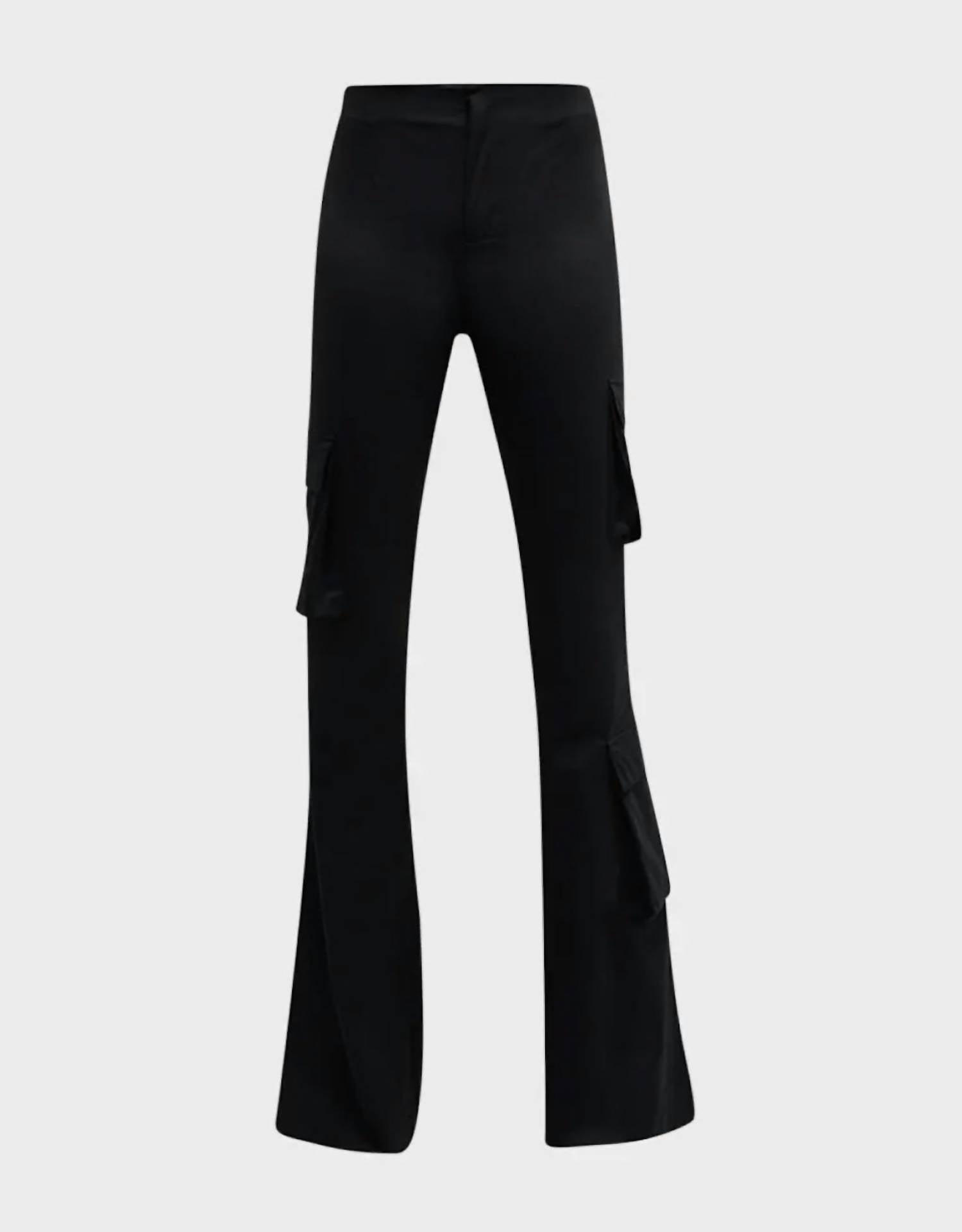 The trend report says boot-cut is in and that's exactly why we love this style. They are fit to perfection, flattering on any body type, and comfortable. They will be your go-to all season long.Stretch taffeta flared trousers featuring cargo pockets throughout. Mid-rise. Fitted through the hip; flared from the knee to ankle. Ankle length, concealed closure, side pockets,Flap pockets, flared cut. MATERIAL : 58% Polyester / 34% Polyamide / 8% Elastane. COLOR : nero. SIZE & MEASUREMENTS : Fits true to size, take your normal size.
