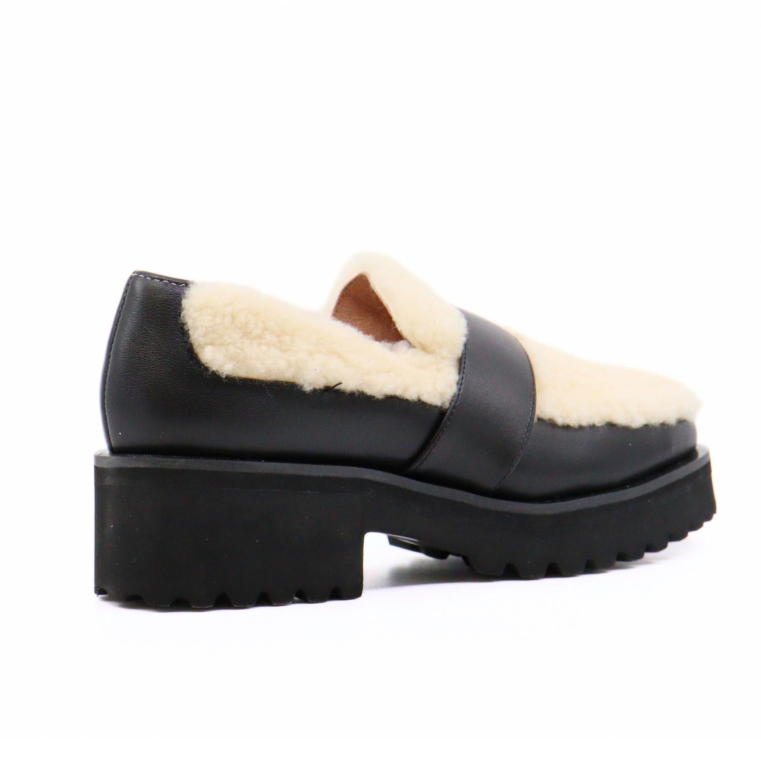 A classic loafer that is both comfortable and polished.Blending classic sophistication with a touch of avant-garde flair. Crafted from luxurious soft leather. Offer unrivaled comfort and effortless style. Cozy sherpa detail not only adds a unique texture but also injects a playful twist. Designed with a subtle yet stylish 2" wedge heel and a 1" platform under the toe. Provide an added lift without compromising on comfort. Transitions seamlessly from a casual day out to a chic evening affair. Guarantees an elegant yet funky upgrade to any outfit.