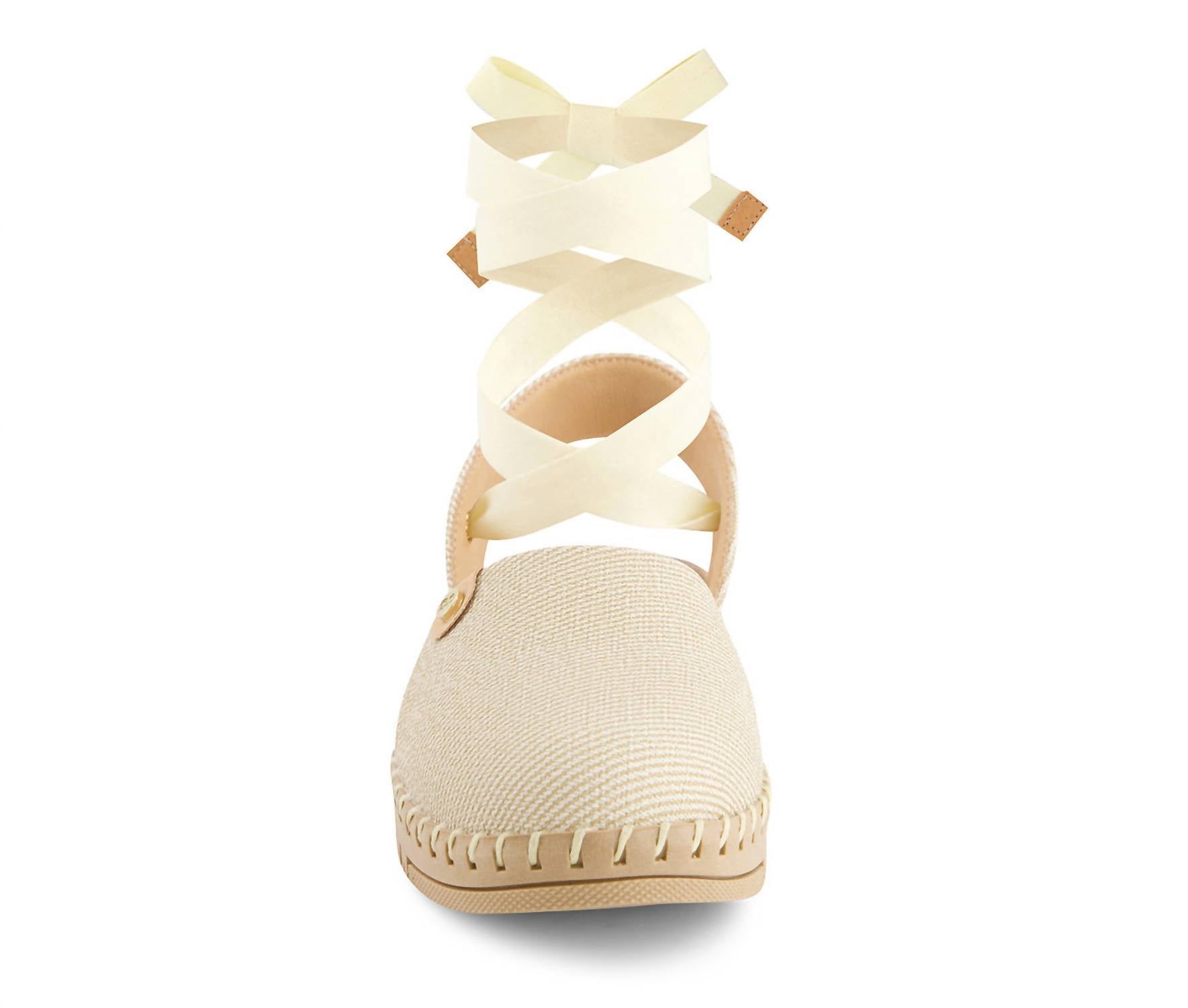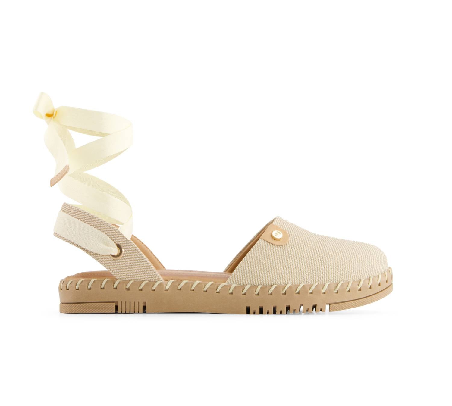 A preppy yet feminine take on the classic loafer. Step into elegance with Andrea's Women's Textile Ribbon Lace Flats, designed in a sophisticated beige for timeless style. These flats feature a round toe and flat heel, making them ideal for spring and versatile for any occasion from a casual outing to a holiday party. Enhanced with a Comfortech insole, soft touch long ribbons, and an anti-slip outsole, they ensure maximum comfort and security. Embrace the trend of Quiet Luxury with these medium-width flats, which effortlessly blend comfort with chic sophistication.