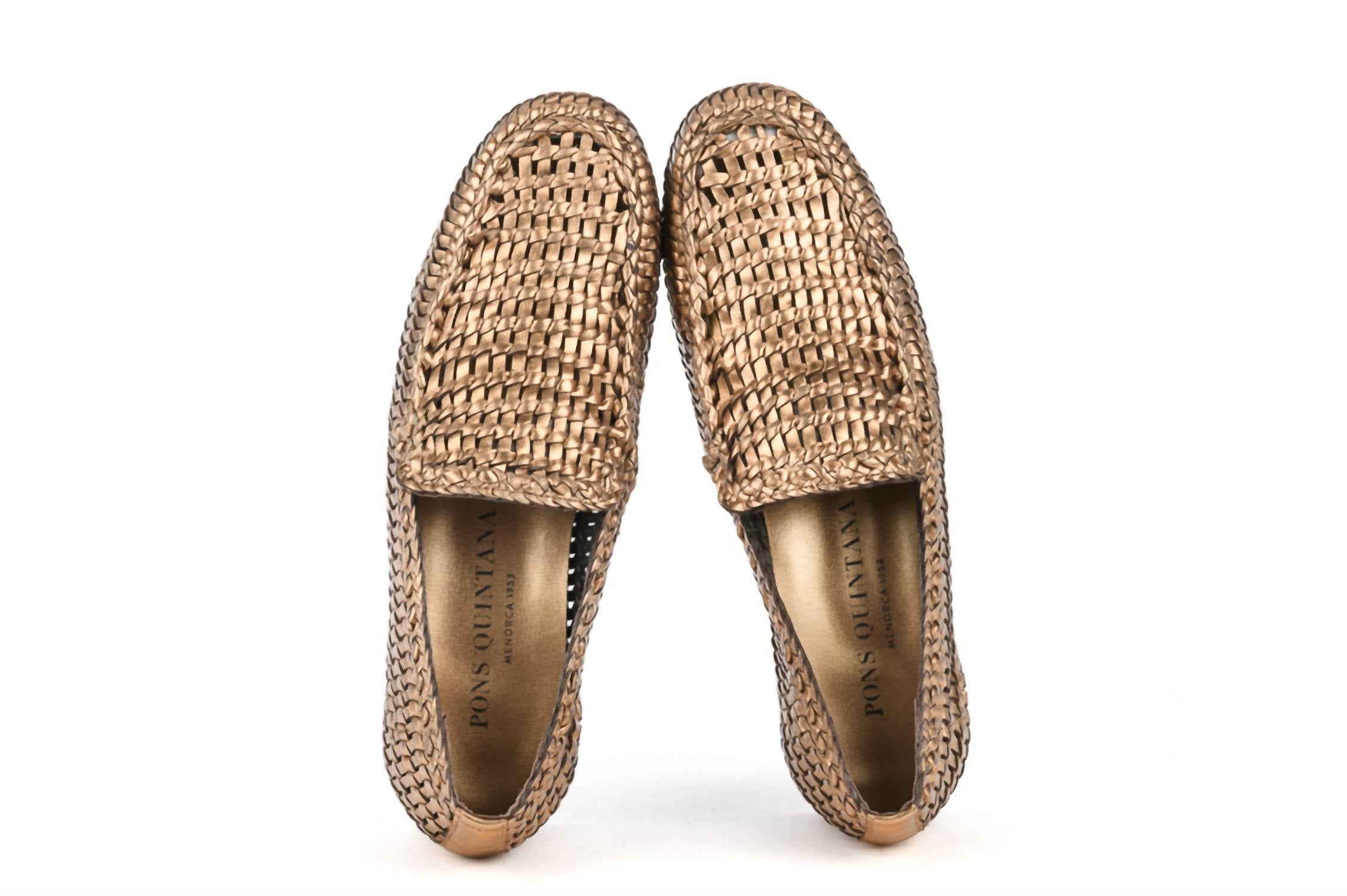 Loafers so versatile you can wear them with just about anything. Step into elegance. Expertly crafted in metallic bronze woven leather. Boast an unlined, open weave design for optimal air circulation and comfort, complemented by a 1.5 cm flexible block heel and a round toe shape. Handmade in Spain. Perfect for everyday wear and travel. Ideal for women seeking style and practicality.