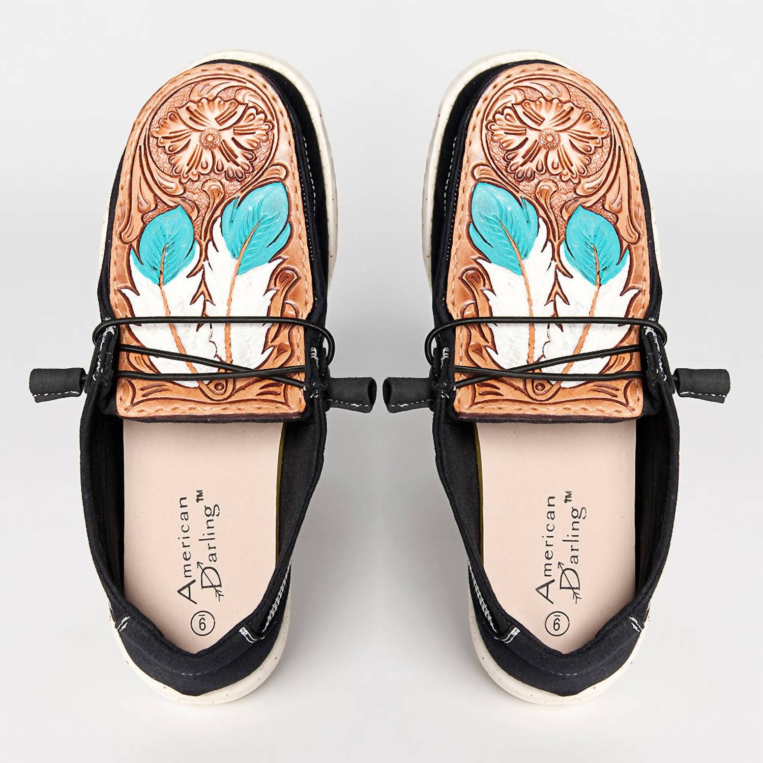 Step into timeless elegance with the Women's Hand Tooled Genuine Leather Slip-on Shoe by American Darling, crafted in sleek black leather. Designed for adult women, this flat-heeled shoe features a round toe for a chic, western-inspired style, perfect for spring travel or Thanksgiving gatherings. The slip-on design includes a soft lining and cushioned insole for all-day comfort, while the sturdy sole ensures lasting wear. Each pair, uniquely handcrafted, develops its own distinct character over time.a