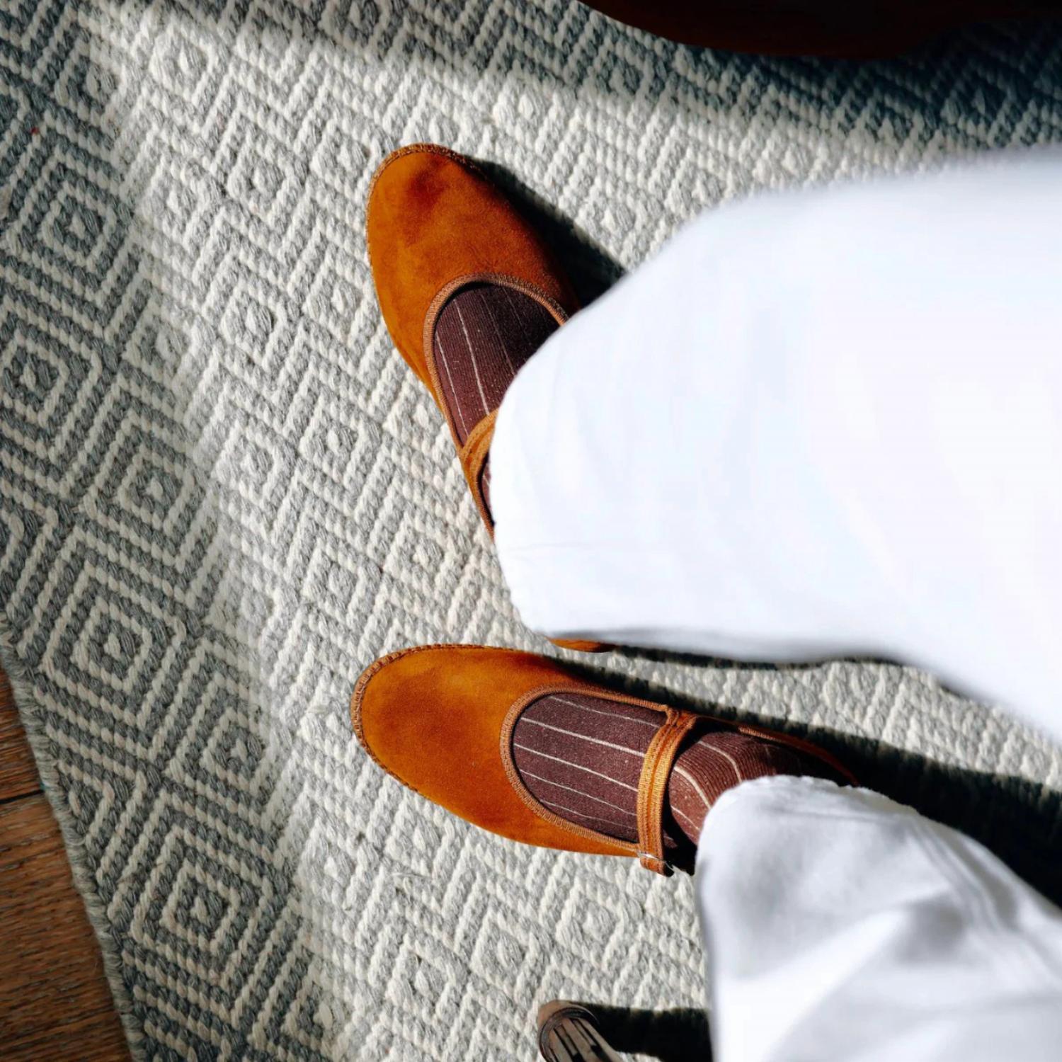 A classic loafer that is both comfortable and polished. Experience timeless elegance designed in a sophisticated Chocolate Brown. Authentic Friulanes are handmade in Italy. Crafted from organic velvet and complemented by English Liberty fabric. Featuring an eco-friendly sole. Adjustable strap featuring a snap closure. For care, hand-wash with soap and a soft cloth in cold or warm water, let them dry naturally, or use a washing machine with a special shoe bag on a delicate cycle. Run slightly small.