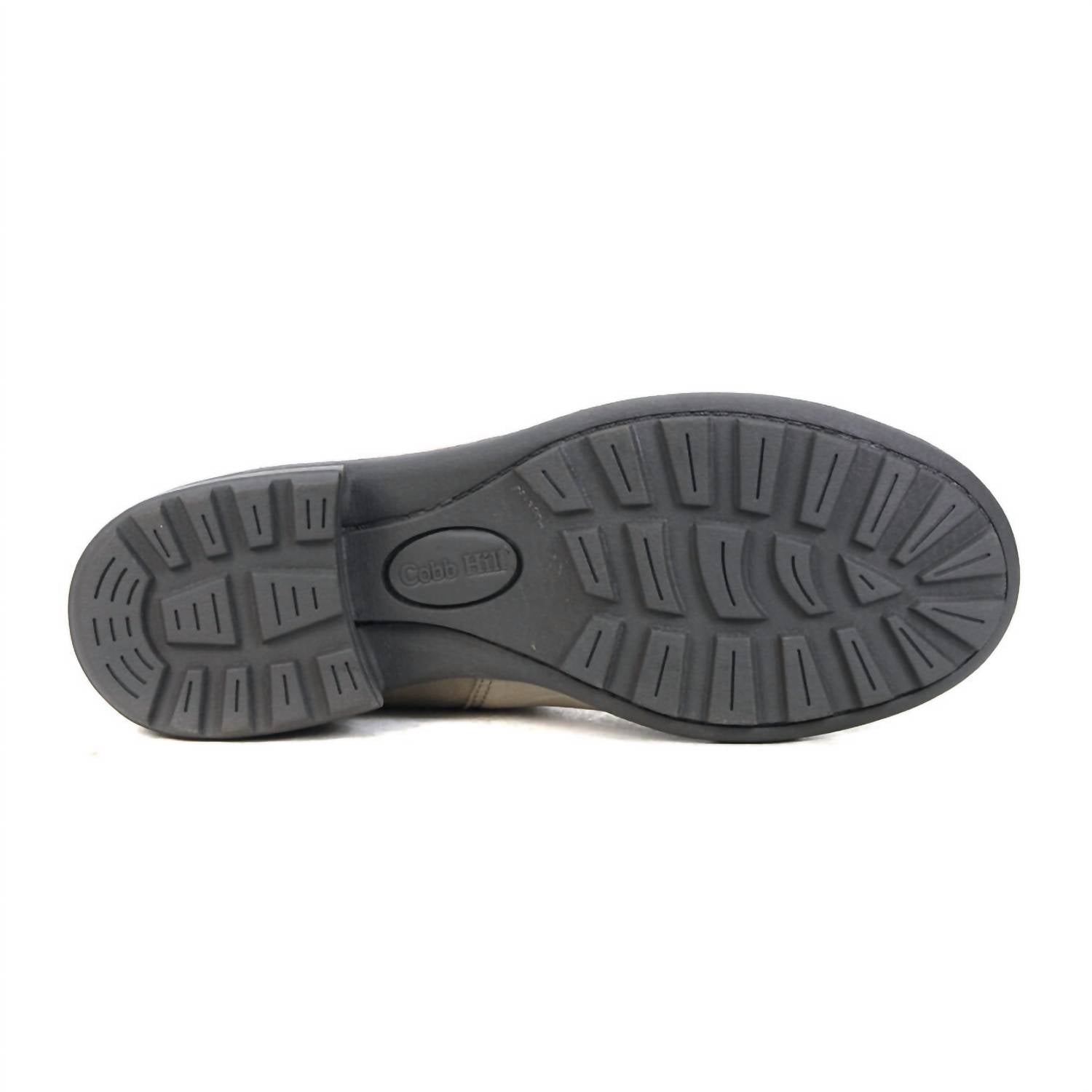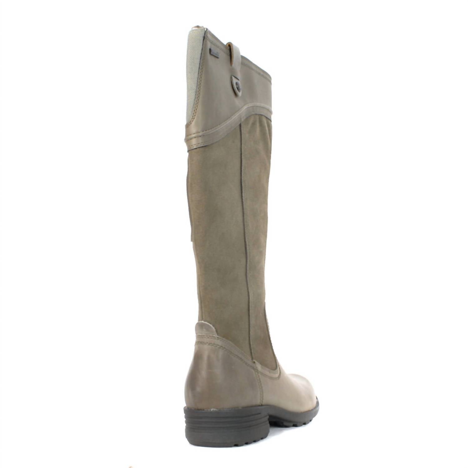 Step out in style crafted for both durability and fashion. Feature a low block heel at 1 1/2 inches (38mm) and a round toe shape. Offering a comfortable fit for all-day wear. Boast an inside zipper for easy wear and a TR rubber outsole for reliable traction. Shaft height of 380mm and a circumference of 394mm. Made with premium grey leather and suede. Waterproof thanks to Hydro-Shield construction, keeping your feet dry in any weather.