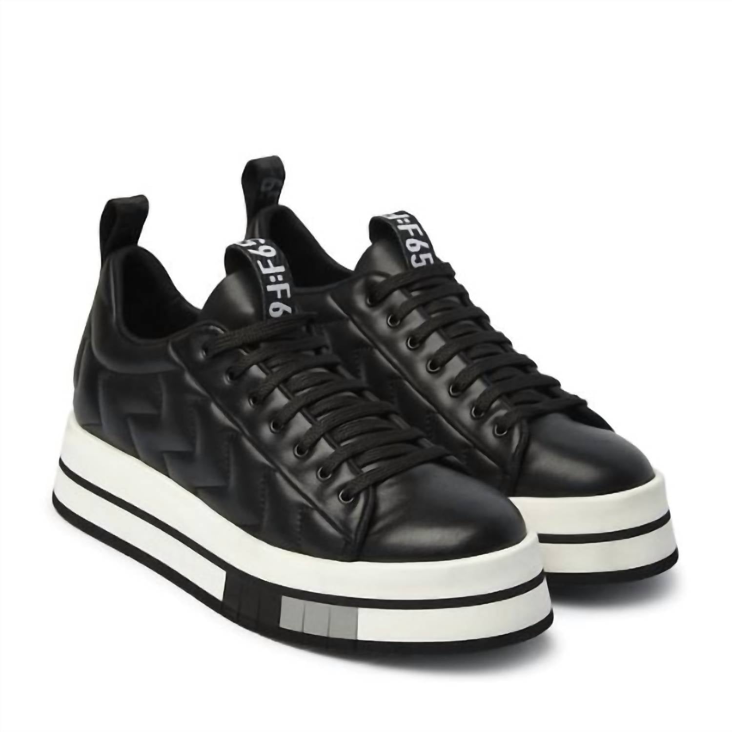Introducing the Women's Donna Sneaker by F65, a chic innovation in footwear made in Italy. This sneaker showcases a round toe shape and features the luxurious Nappa material in a sophisticated black hue. With its redesigned rubber sole offering flexibility and resistance, it promises a smooth and comfortable stride. Perfect for the modern woman seeking a blend of style and comfort in her every step.
