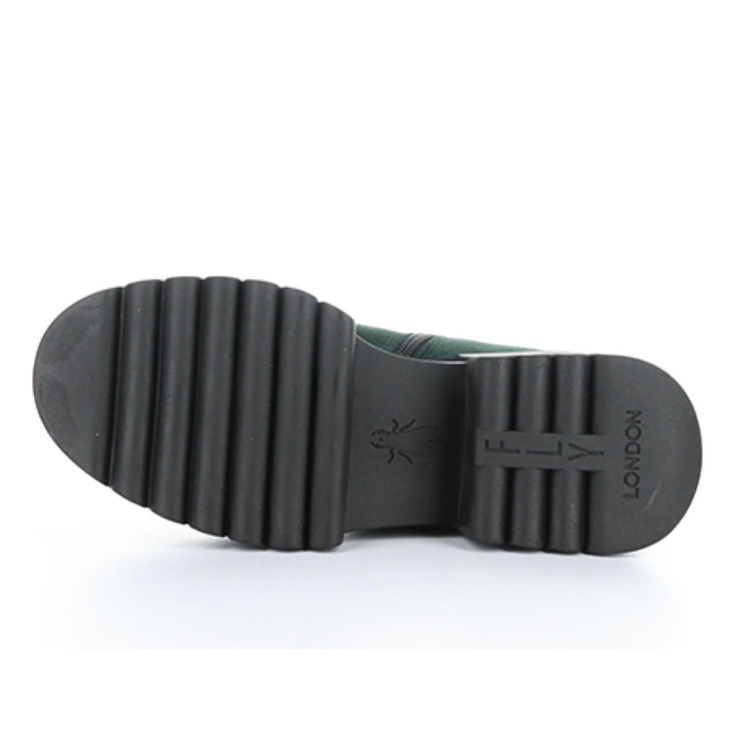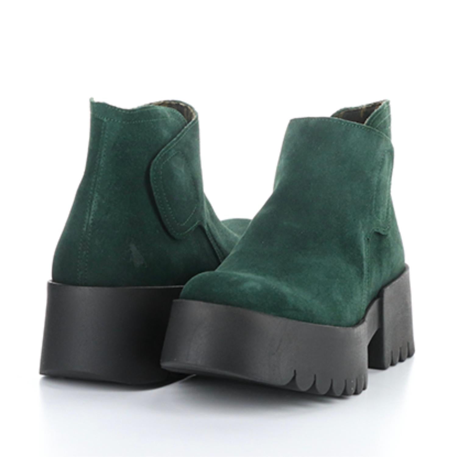 Say hello to the perfect, most versatile boot. The ankle height makes this style easily transition from day to night. Wear them with your favorite skinny jeans and tee for a more laid back look, or pair them with your favorite mini dress and jacket for a night out on the town.Just the right amount of funk mixed with a neutral forest green. Fly London's signature chunky sole is flexible and lightweight and gives you plenty of height away from the slush and rain this winter. With both an inside zipper and outside velcro closure - this ankle boot is easy to get on and off. Moisture-wicking microfiber lining and the heel-to-toe cushion insole add an extra layer of comfort for your feet. 4.25" shaft height, leather upper, 2.25" heel. 1.5" forepart, removable cushion insole. Made in Portugal.