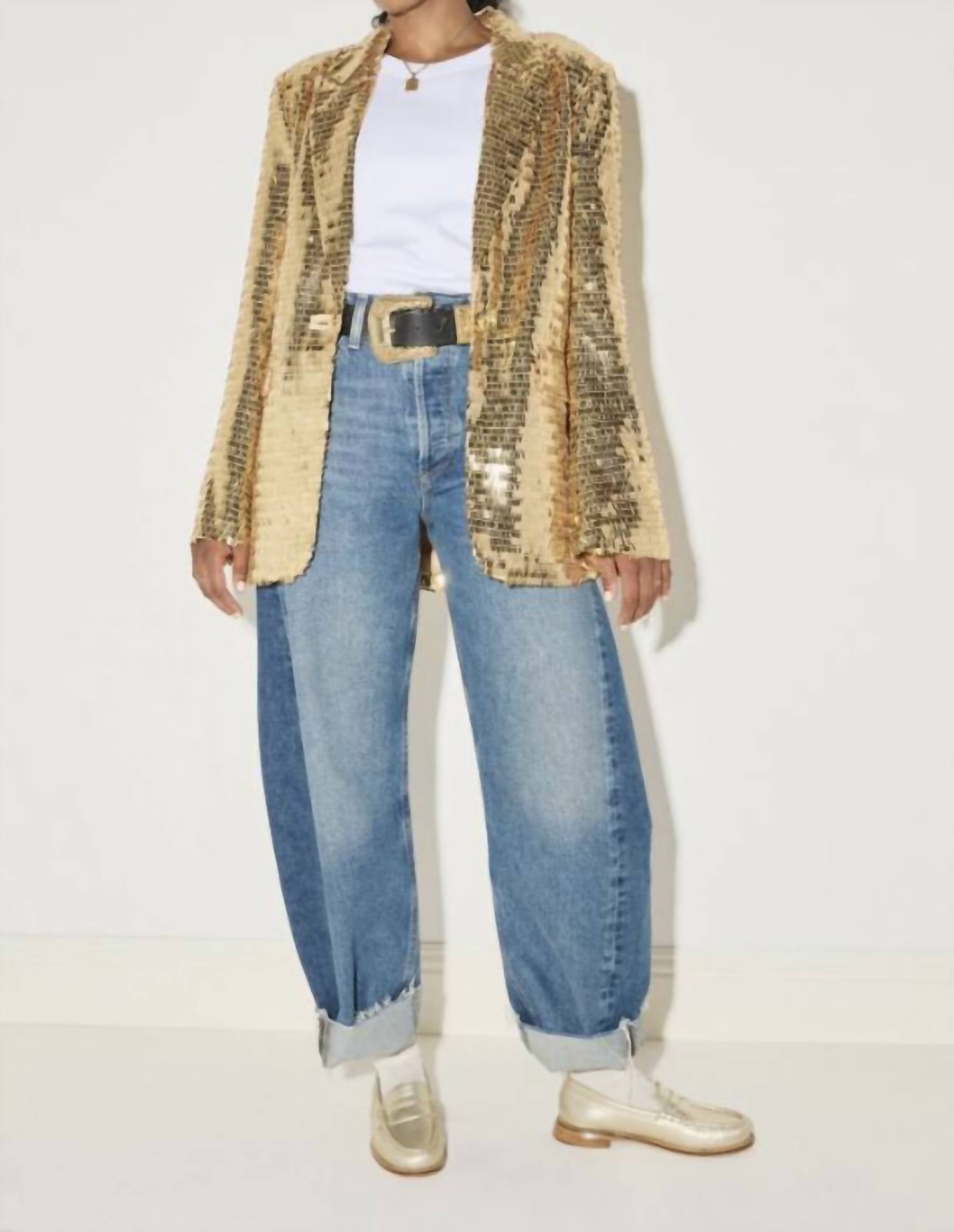 Step into sophistication with the Women's Elba Penny Loafer by FREDA SALVADOR, crafted from 100% Italian leather in a striking gold hue. With a 0.75" angled heel and leather sole, these loafers blend timeless style with modern flair. Made in SV, they feature a leather and rubber split chip heel cap for added durability. Perfect for the fall season and holiday parties, these shoes fit true to size and naturally mold to your foot, becoming more comfortable with each wear.