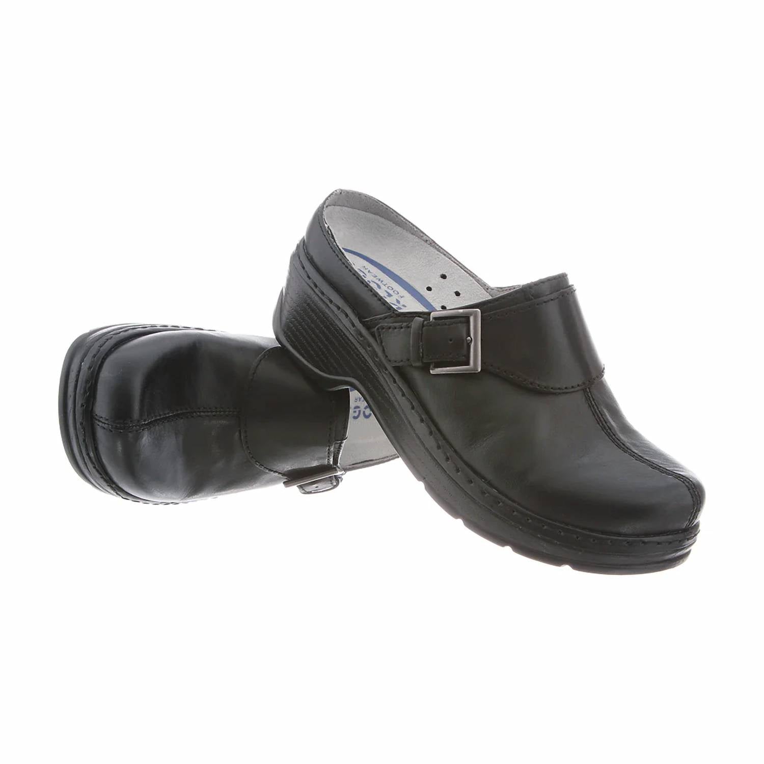 Step into comfort and style with the Women's Austin Clog by Klogs Footwear, designed in a chic Black Full Grain color. These clogs feature smooth full-grain leather uppers and a round toe, providing a classic look with a modern twist. The platform heel measures 1.75 inches, supported by shock-absorbing TRUBase® outsoles for superior comfort. With TRUComfort® insoles, these clogs offer cushioning to alleviate foot, back, and leg pain.