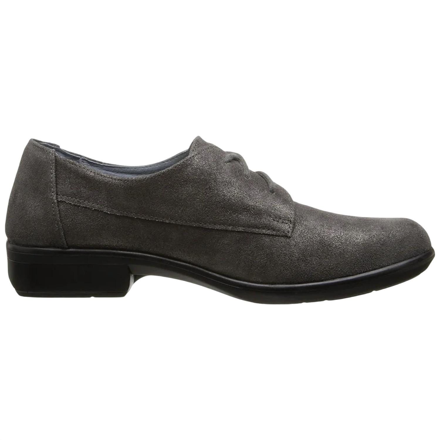 Designed as a flat lace up shoe with contrasting leathers. This style has a heel cup for stability and support. Naot's removable, anatomic cork and latex footbed is wrapped in leather and molds to the shape of the foot with wear. The Aura Collection features a 1.5'' polyurethane sole which is extremely lightweight, durable and abrasive to prevent slipping.
