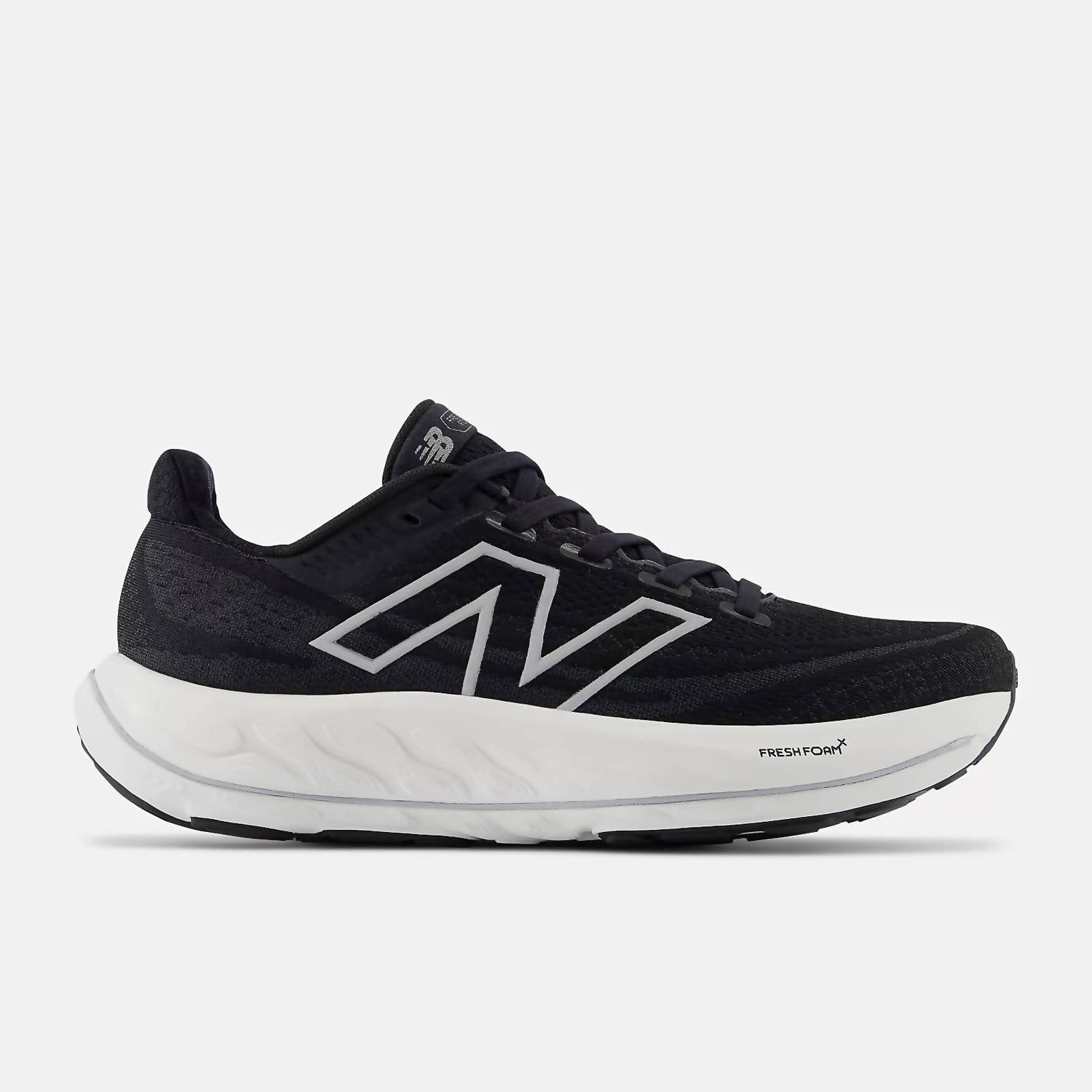 When fashion meets function. Experience superior comfort and support with the Women's Fresh Foam X Vongo V6 Running Shoes by New Balance, designed for fitness and streetwear enthusiasts. Featuring a lightweight engineered mesh upper with synthetic overlays, these shoes ensure breathability and a perfect fit. Weighing just 243 grams (8.6 oz), they incorporate a Fresh Foam X midsole for enhanced cushioning and a supportive medial zone to reduce overpronation. Ideal for summer workouts or Thanksgiving runs, these shoes are as stable as they are stylish in a sleek black and white colorway.