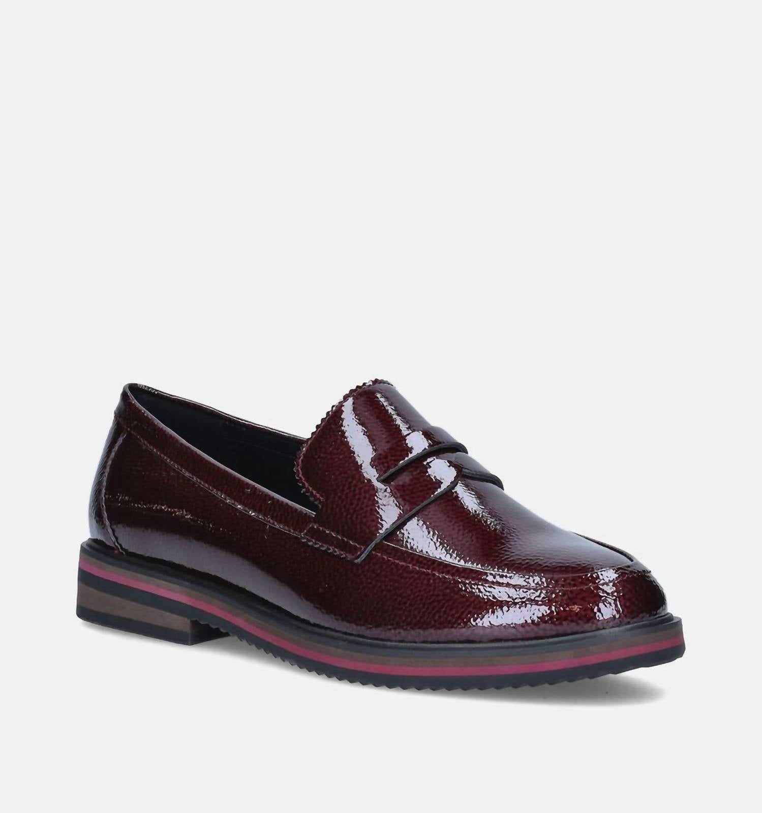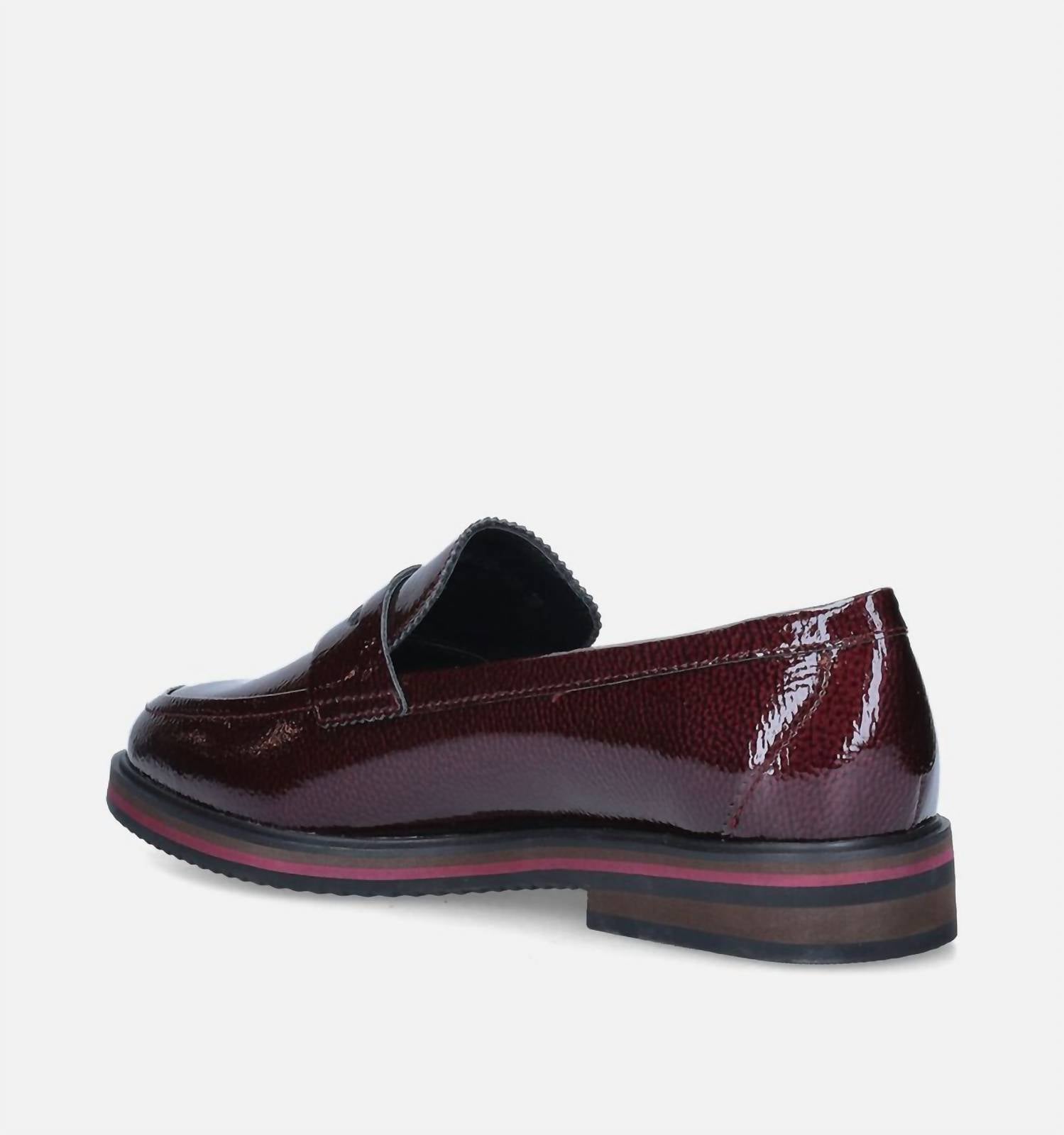 Step out in style with the Women's Berta Loafers by Regarde Le Ciel, exquisitely crafted in polished patent leather for a touch of timeless elegance. Featuring an almond toe and a subtle 1" block heel, these loafers offer a versatile vintage appeal perfect for both casual and professional settings. Ideal for a narrow fit, the cushioned insole ensures comfort with every step. These stunning burgundy loafers are an excellent choice for summer vacations and beyond.