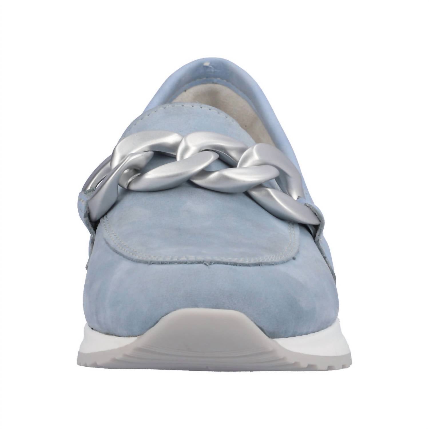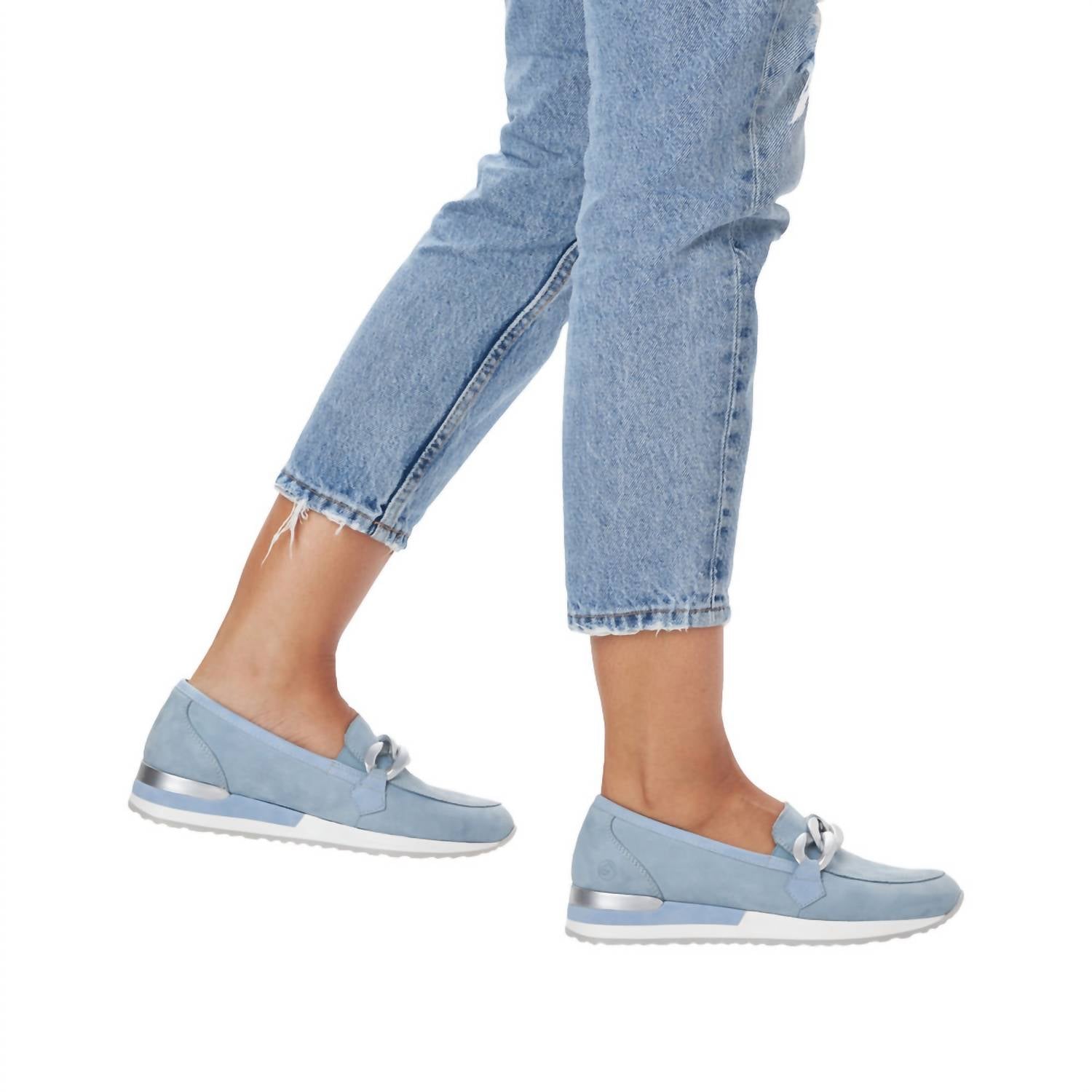 Introducing the Elmira 44 Loafers by Remonte, a blend of elegance and comfort crafted from suede leather in a charming hue. These slip-on loafers are designed for convenience with an almond toe shape and a low 1.4" wedge heel. The removable footbed and lightweight micro suede lining ensure your feet stay cushioned and comfortable throughout the day. The thermoplastic elastomer sole provides flexibility, making these loafers a practical addition to any wardrobe.