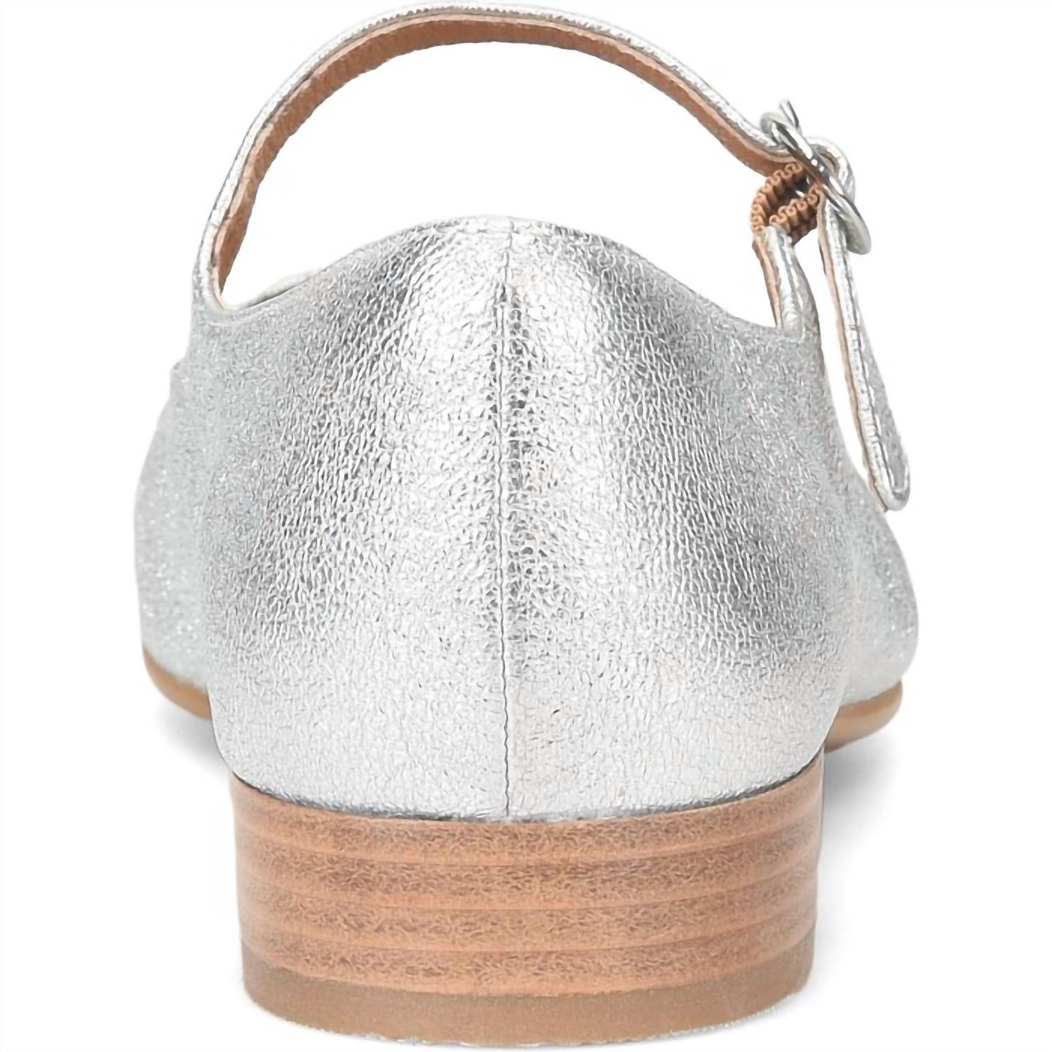 Discover the Elsey Leather Flats by Sofft, a chic update to the classic Mary Jane style in sophisticated silver. Crafted from choices of Italian leather or crinkle patent leather, these flats feature an adjustable buckle closure for a perfect fit. They are designed with a lightweight TPU outsole and a 1-inch wrapped or stacked heel, offering all-day comfort with a soft microfiber-lined footbed and cushioned support at the ball, heel, and arch. An ideal blend of timeless elegance and modern comfort, these flats ensure you step stylishly and comfortably from day to night.