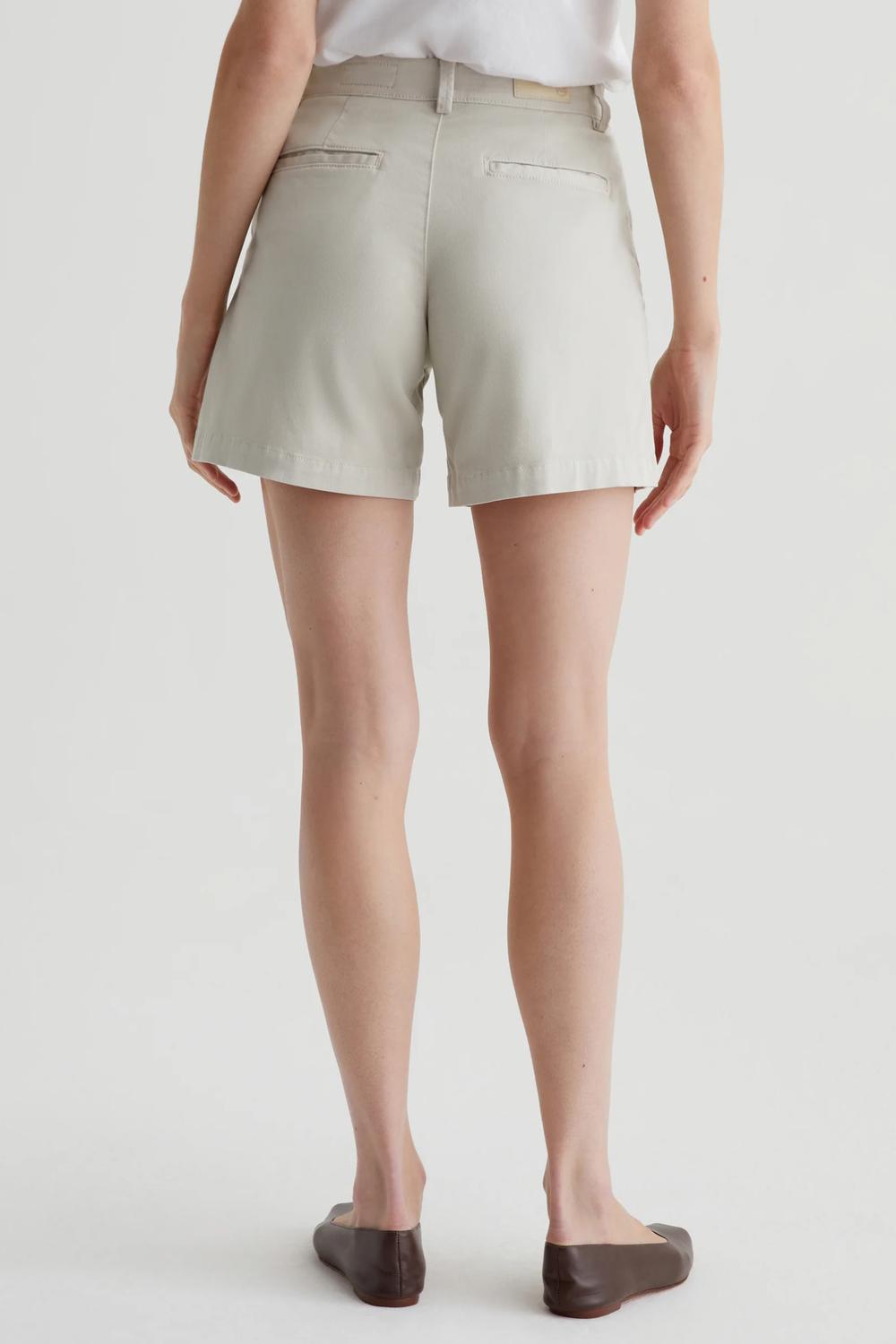 Elevate your warm-weather wardrobe with the Jude Shorts by AG Jeans, designed for women seeking comfort and style. These high-waist, off-white chino shorts feature a relaxed fit through the hips and a wider leg opening, perfect for spring outings. Crafted from a Cotton Blend (54% Cotton, 43% Lyocell, 3% Elastane), they are equipped with a convenient button closure. Measurements include a 10 1/4" front rise, 24" bottom opening, and a 5" inseam. Machine wash.