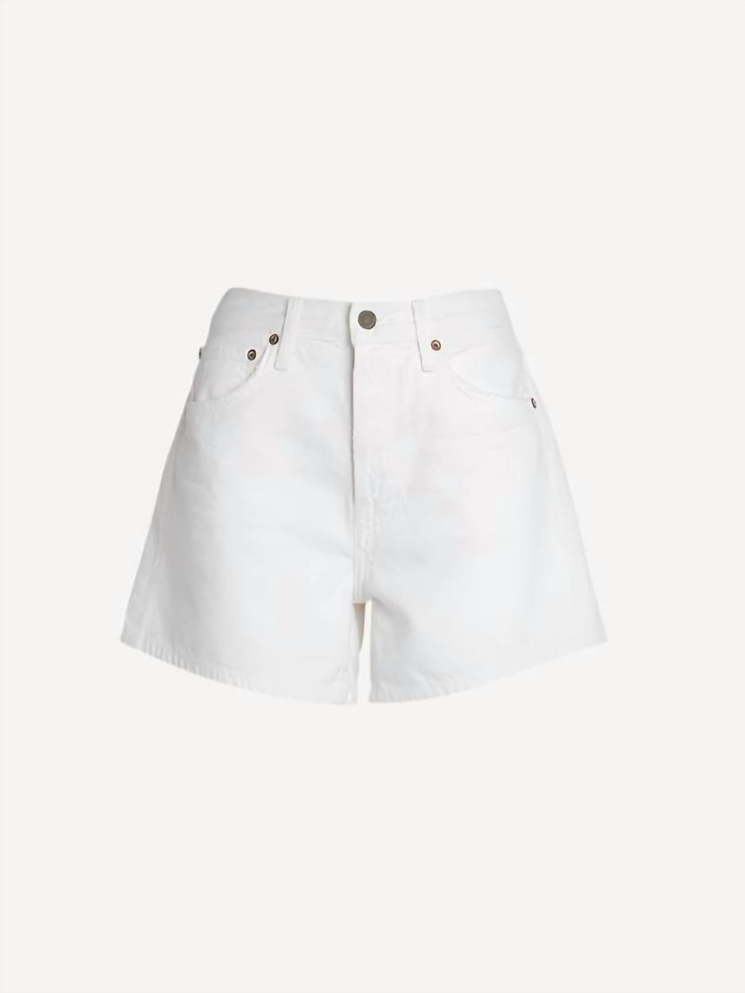 Not only cute but extremely comfortable. The jean shorts you will be reaching for all season long. Meet the Parker Long Short by AGOLDE, your ideal vacation companion for casual yet chic spring streetwear. Made from 100% organic cotton, these solid jean shorts in the shade 'Dough' showcase a button closure for ease of wear. Designed with practicality in mind, they come equipped with pockets and a solid pattern. Care is straightforward with machine wash instructions for effortless maintenance.