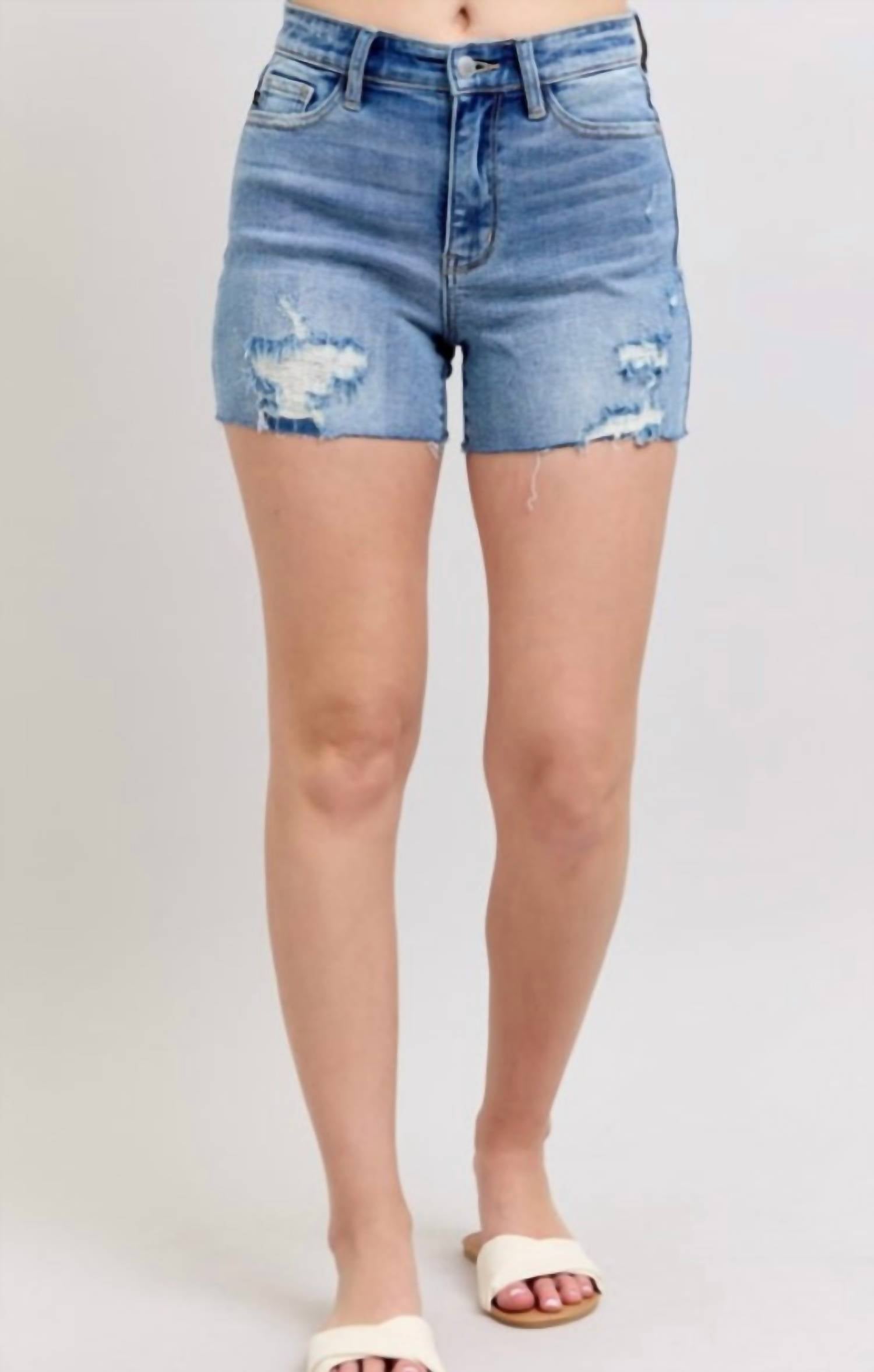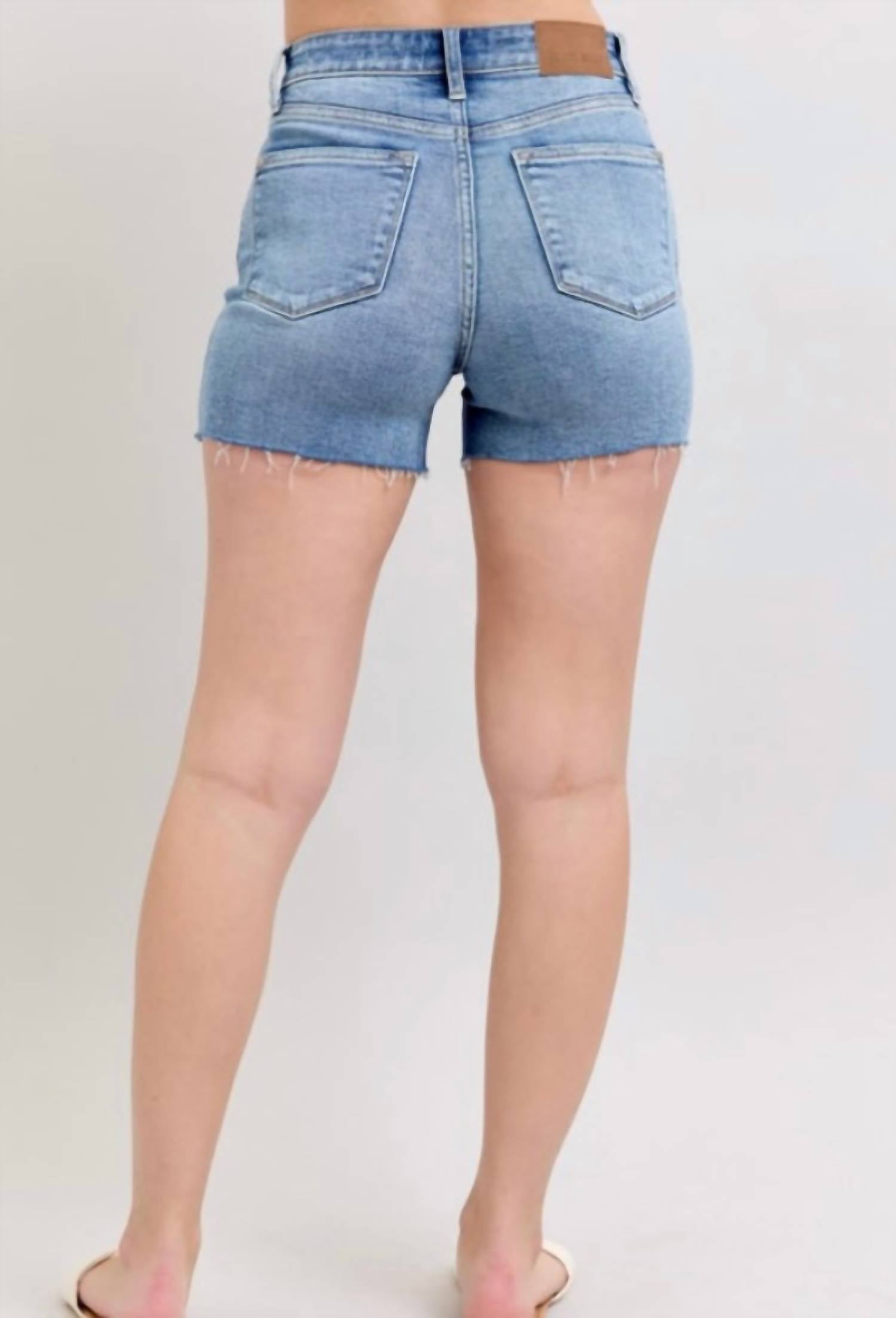 Jean shorts so versatile, you can literally wear them with anything. Introducing the High Waist Denim Shorts by Judy Blue, crafted from a cotton blend in a fashionable light blue wash. These women's jean shorts feature stylish stitching and distressing details with a textured pattern, perfect for a streetwear vibe. With a high-rise front measuring 10.5 inches and a 3.75-inch inseam, these shorts include convenient pockets and are secured with a button closure. Care is simple with machine wash and tumble dry instructions, making them ideal for summer vacations.
