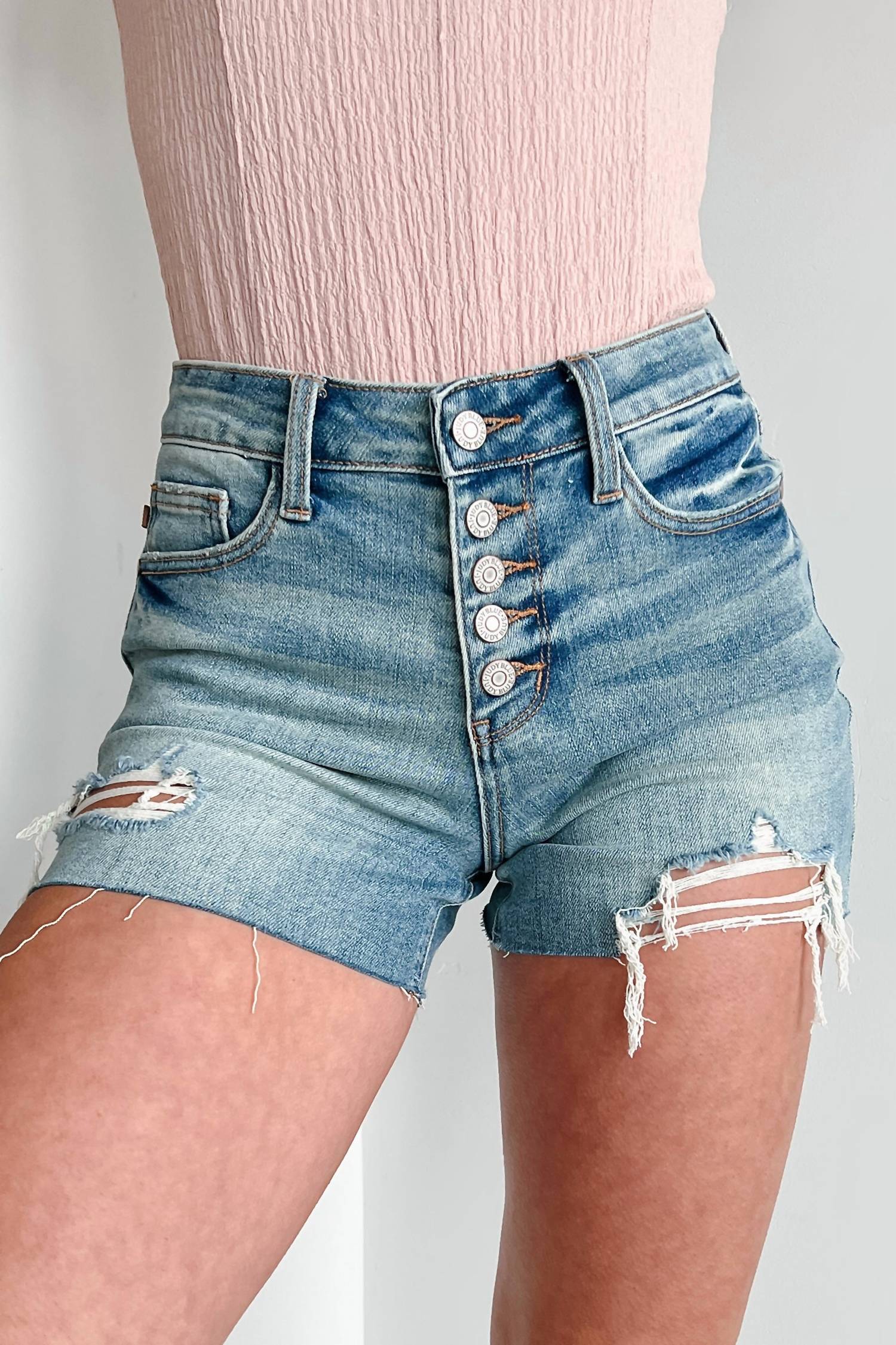 Judy Blue - Mid Rise Button Fly Distressed Shorts