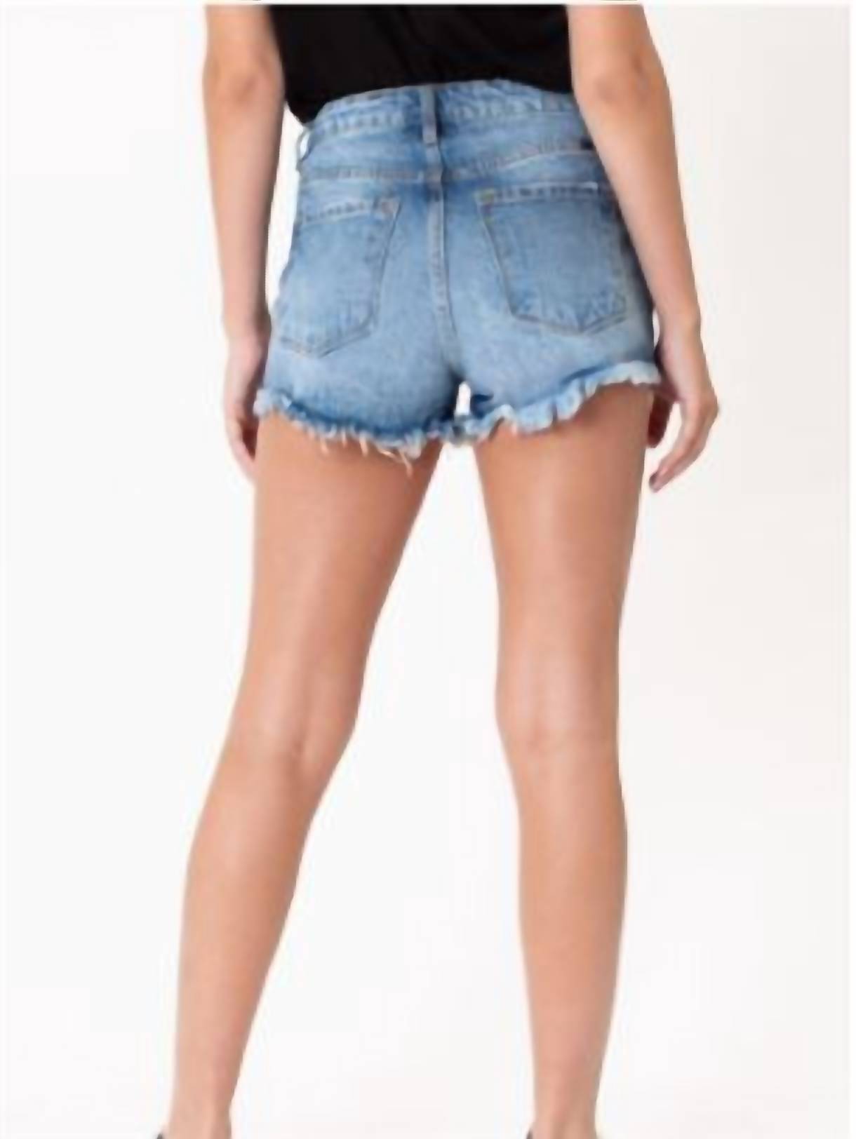 Not only cute but extremely comfortable. The jean shorts you will be reaching for all season long.These are a high-rise in medium denim with pastel threads in the distressing. Soft and comfy with a nice stretch.TTS