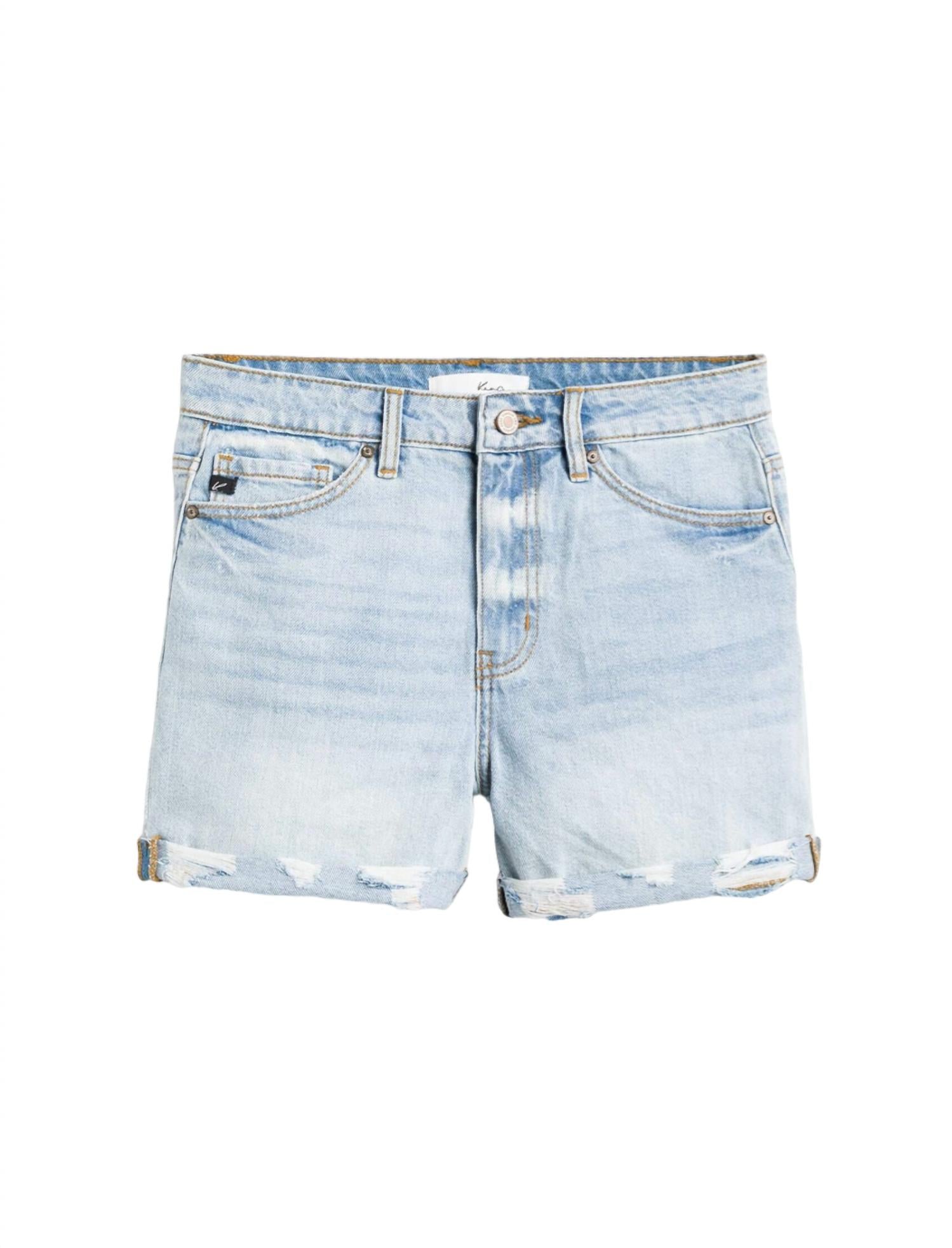 You can never have too many jean shorts and these will be your new favorites.Features that perfect Kancan fit, clean front, and cuffed hem. Button fly and zip closure. Belt loops. 5 pockets. 100% cotton.