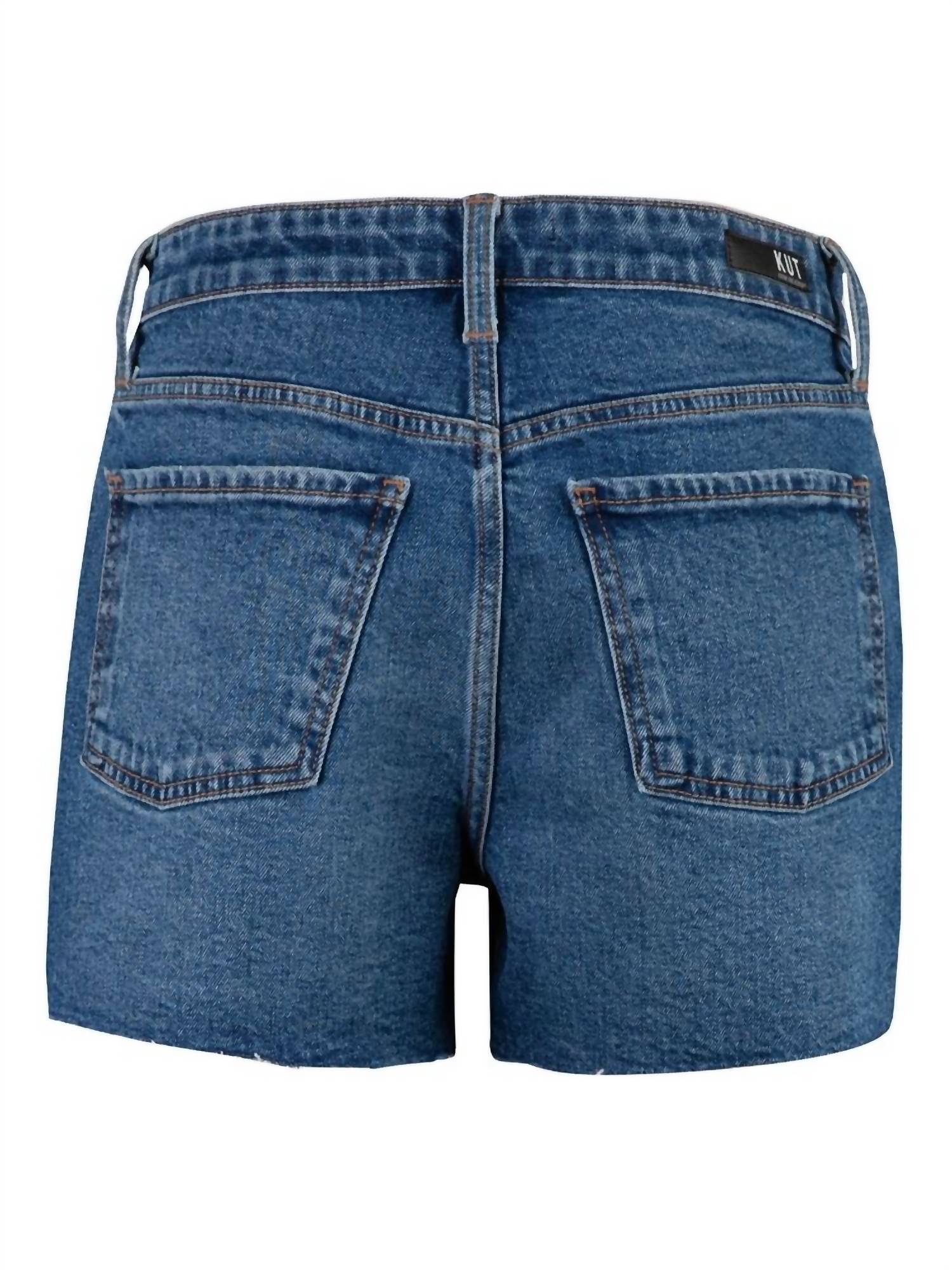 Not only cute but extremely comfortable. The jean shorts you will be reaching for all season long. Meet the Jane Hi Rise Fray Hem Short by KUT FROM THE KLOTH, perfect for adding a touch of streetwear flair to your vacation wardrobe. In a textured dark blue, these jean shorts feature practical pockets and a stylish button closure. They're designed with maternity needs in mind, making them ideal for comfortable spring outings or festive gatherings like the 4th of July. Care: Machine wash and tumble dry for easy maintenance.