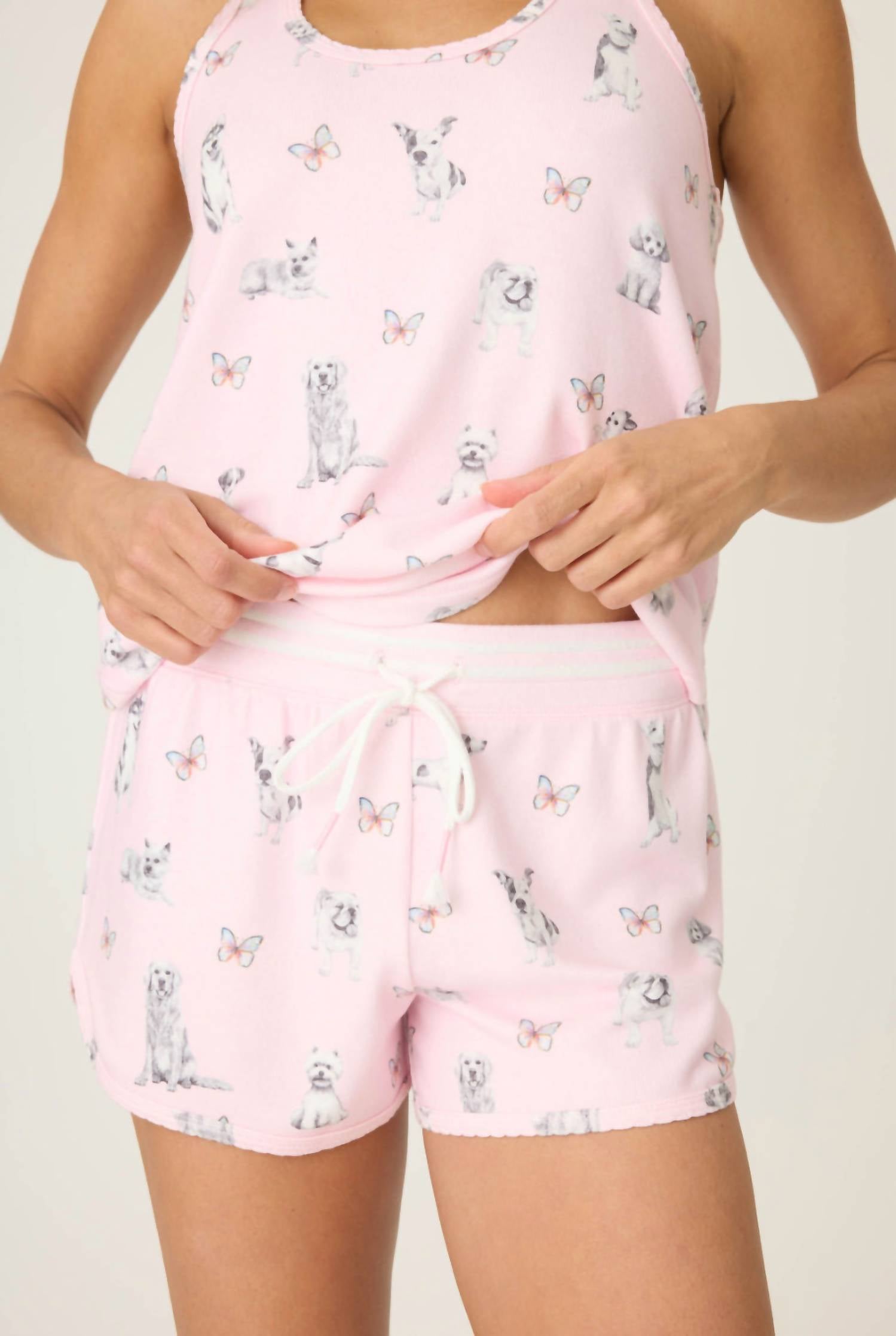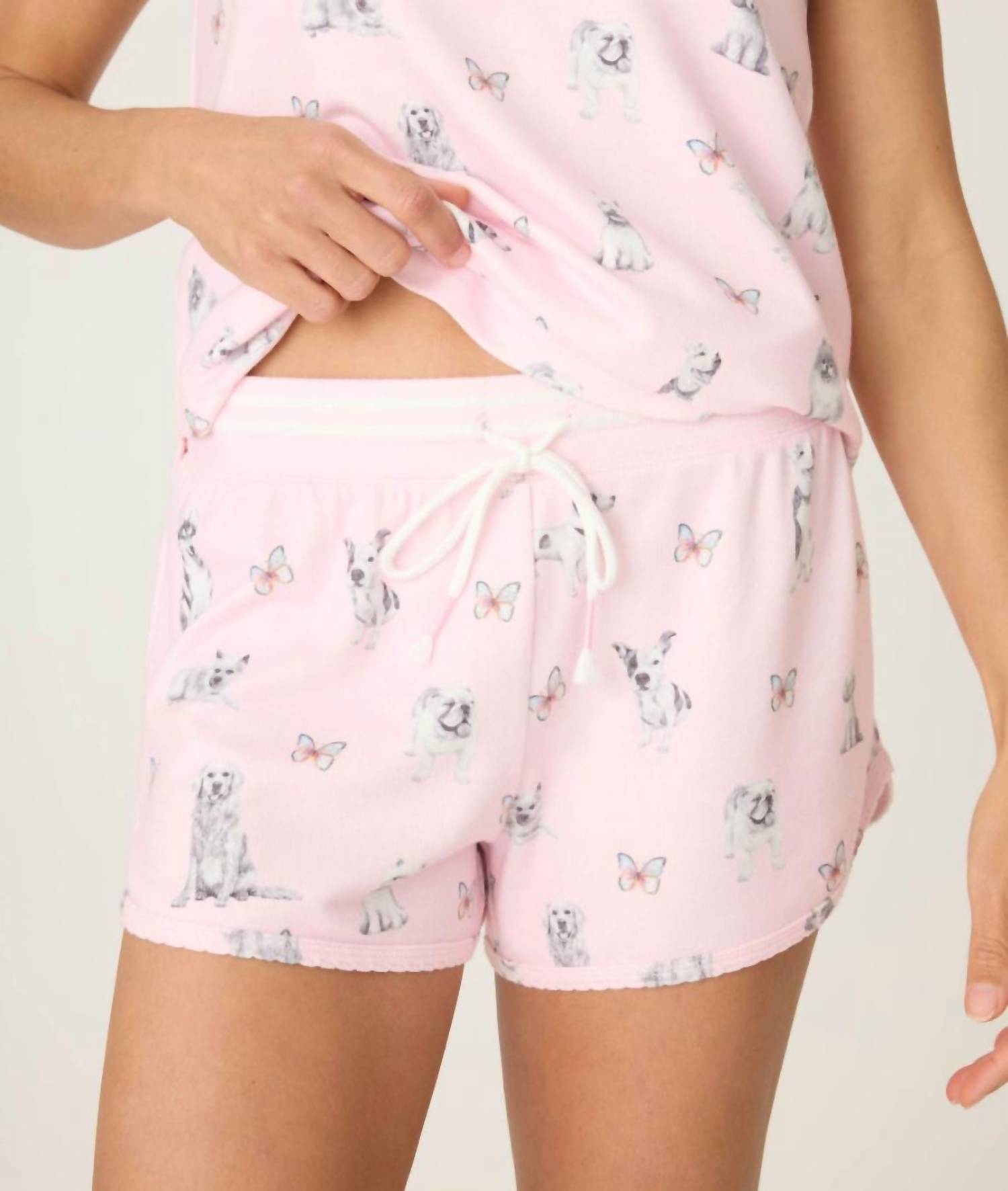 Discover the playful charm of the Butterfly Grove Lounge Shorts by PJ Salvage, crafted from 81% polyester, 14% rayon, and 5% elastane in a delightful Pink Tint graphic design. Tailored for a high waist with a pull-on closure, these shorts feature a scalloped hem and an elastic waistband with a striped drawstring for adjustable comfort. Imported and designed for women, they promise relaxed all-day wear that's perfect for vacation or Mother’s Day. Care is a breeze with machine wash cold and a low tumble dry.