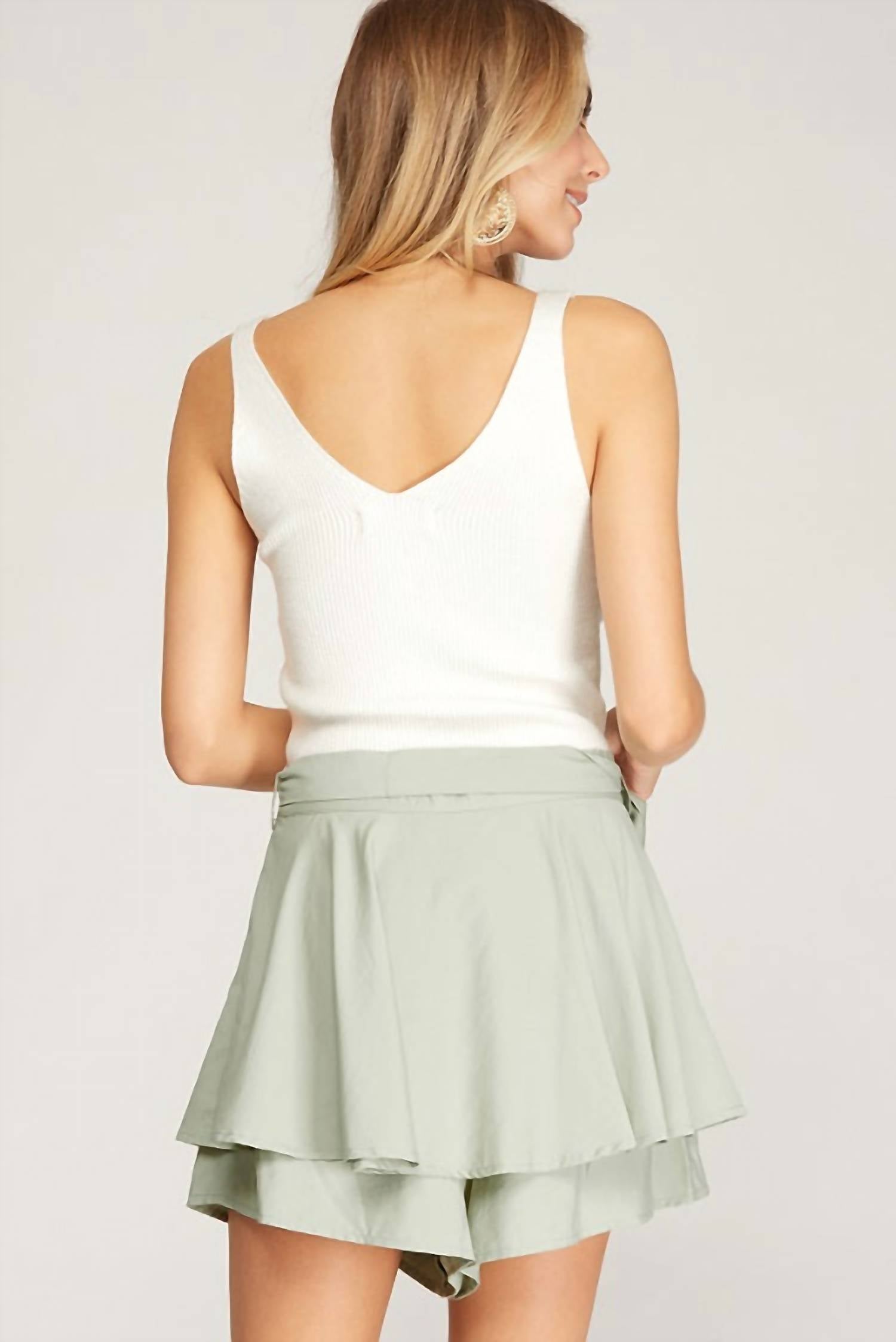 The cutest skort that combines style and functionality.Flounce woven skort with waist tie sash. Waist Length Small 26" 15" Medium 28" 16" Large 30.5" 16"