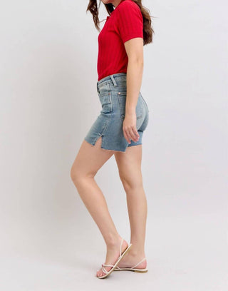 Judy Blue - High Waist Vintage Wash Side Slit Denim Short