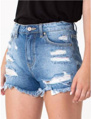 Kancan - Pastel Thread Distressed Denim Shorts