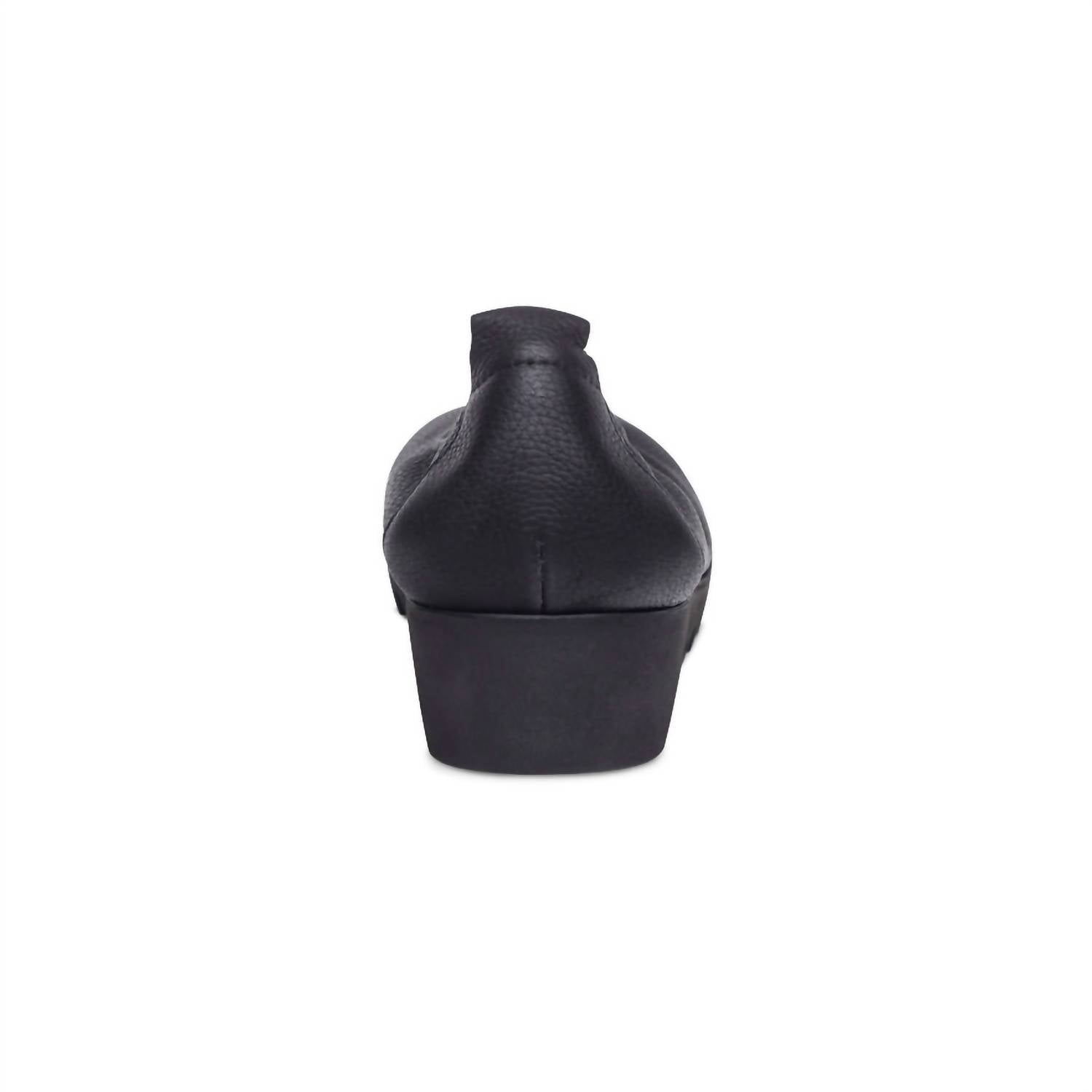 A preppy yet feminine take on the classic loafer. Step comfortably into sophistication with the Women's Brianna Ballet Flat by Aetrex. Crafted from soft nubuck and pebble grain leather, this black flat features a stretchy topline and a 1.25-inch flat heel. The shoe incorporates the Aetrex Cobra Orthotic System with built-in arch support to stabilize and align your feet while relieving common foot pain and plantar fasciitis. Made with a memory foam midsole and a lightweight rubber outsole, it offers unmatched cushioning and durability.