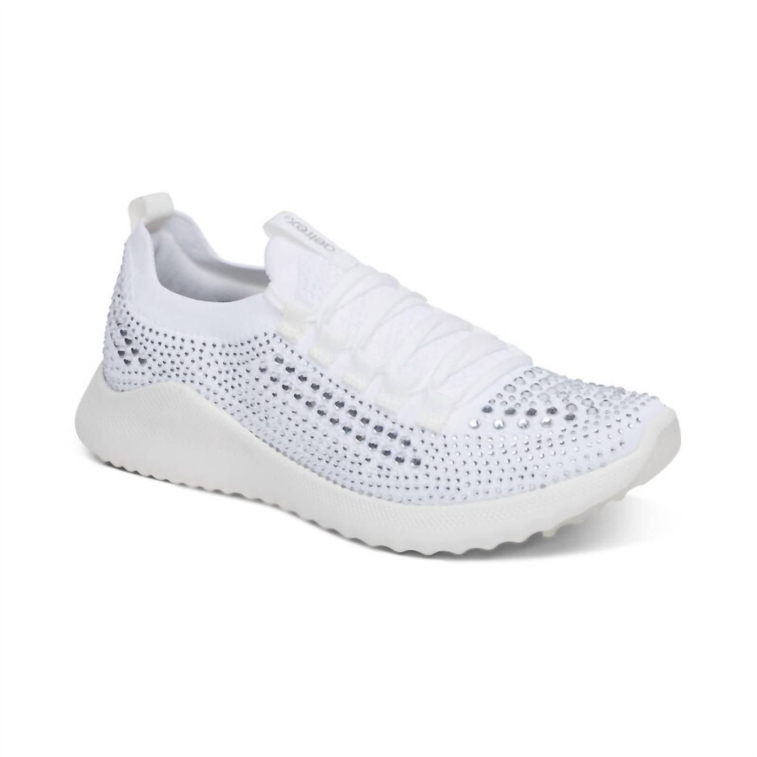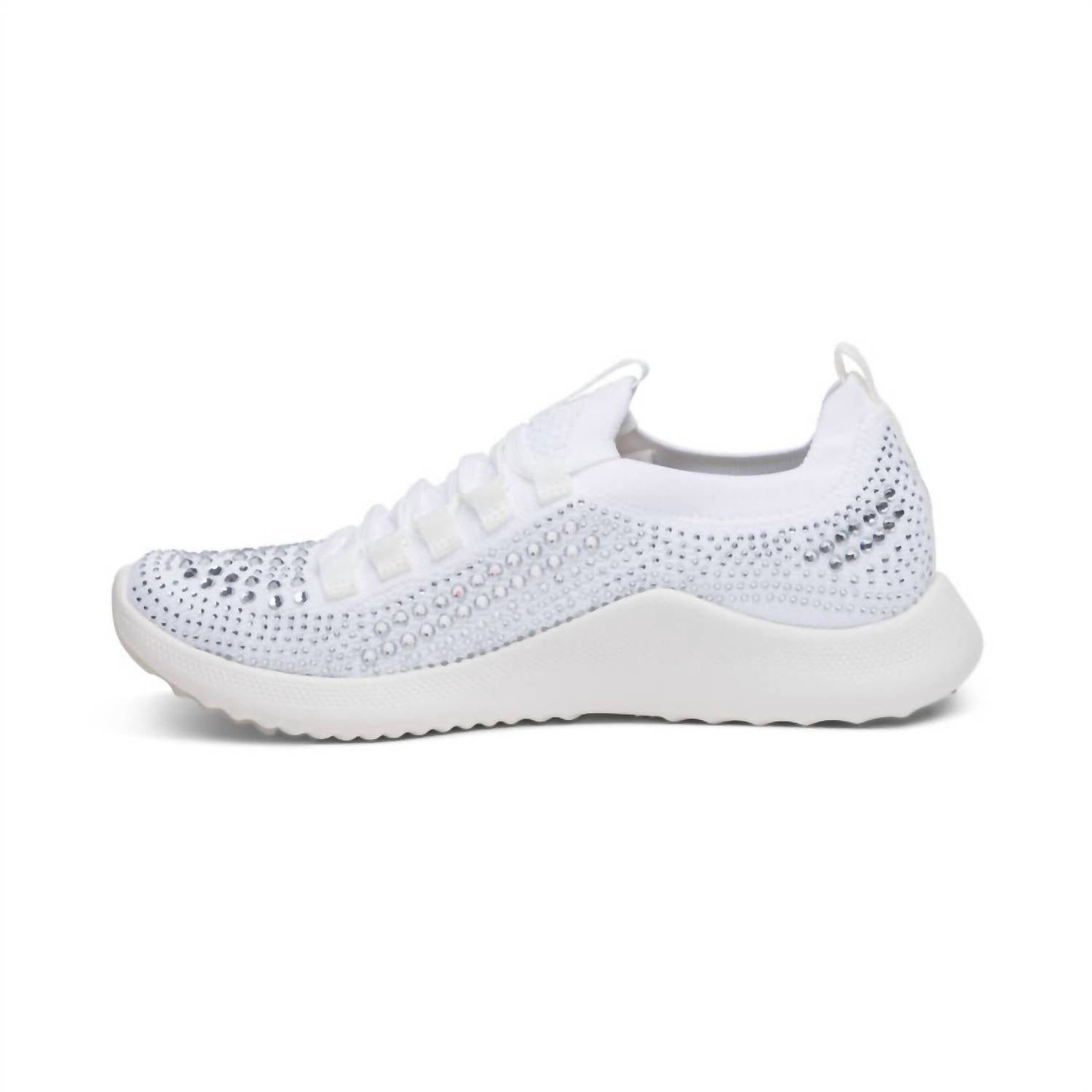 These lightweight kicks provide the comfort you need for long periods on your feet. With pressure relief cushioning, a padded heel, and stretchy knit material, the Carly Sparkle will keep you comfortable on your most active days.