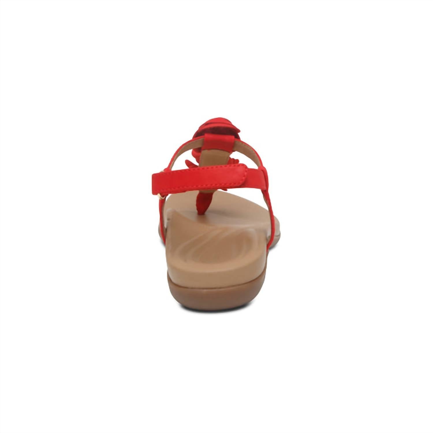 Flowy dresses, cropped pants, and even jumpsuits... this sandal works with them all! This stylish thong sandal features floral embellishments, a hook-and-loop closure for a secure fit, and built-in orthotic support to relieve foot pain and improve alignment. The contoured heel, UltraSKY™ cushioning, and antimicrobial faux leather ensure all-day comfort, while a durable rubber outsole adds lasting wearability.