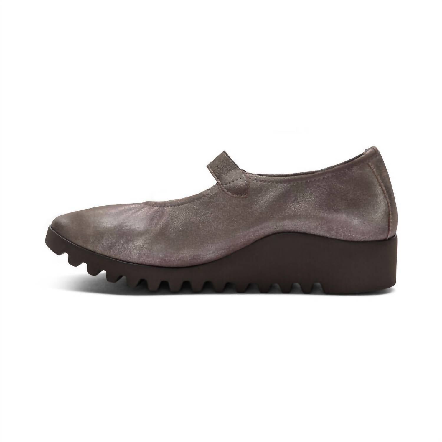 This Joanne Mary Jane Flat is crafted from premium leather with a 1.5” wedge heel and adjustable hook & loop strap. Designed with the Cobra Orthotic System, UltraSky cushioning, and a removable insole for comfort, it offers arch support and durability.
