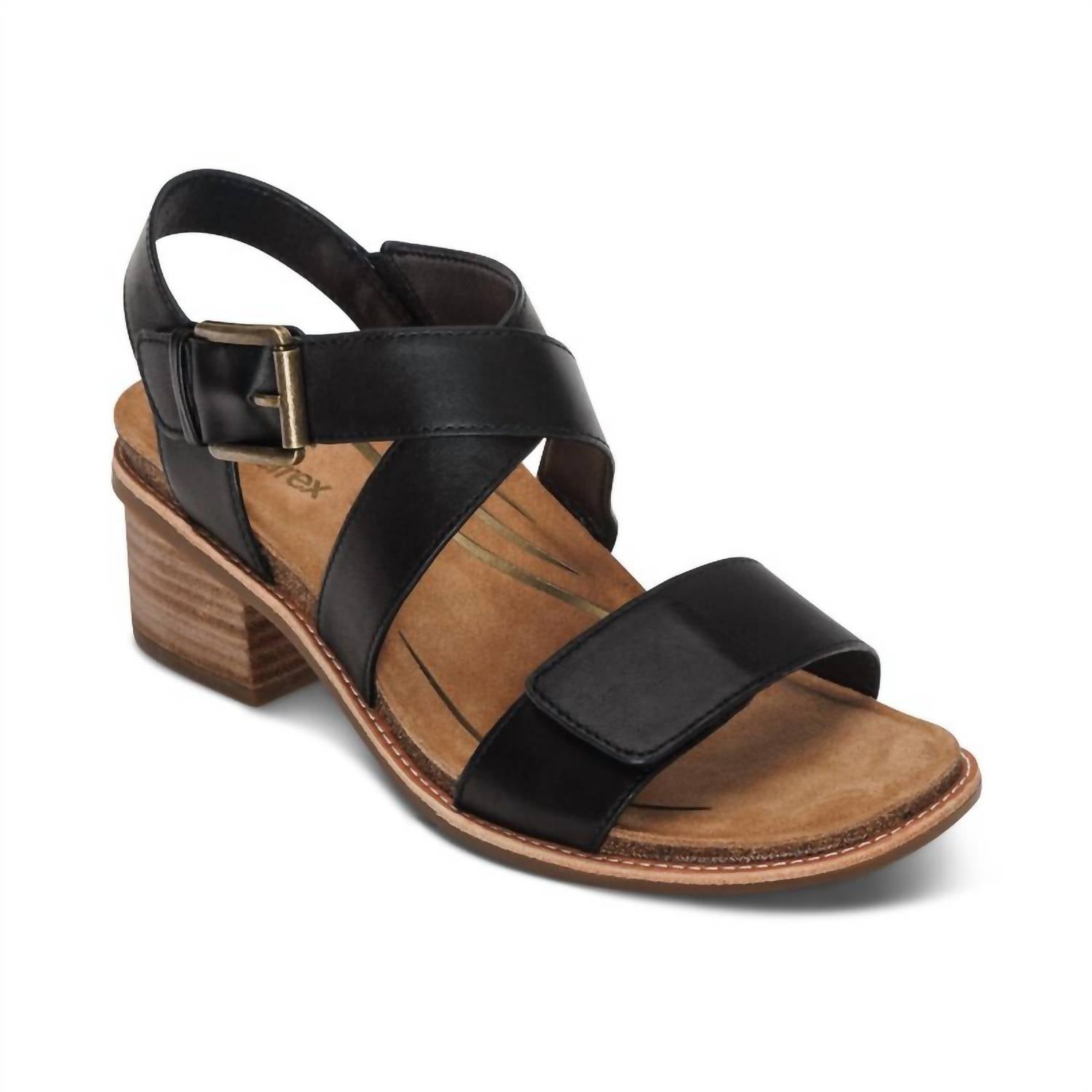 Flowy dresses, cropped pants, and even jumpsuits... this sandal works with them all! These genuine leather sandals feature a 2.25-inch block heel and an open toe design. The built-in orthotic system includes arch support and a memory foam footbed for cushioning and pain relief. The adjustable hook and loop closures paired with stretchy gore material ensure a tailored fit, while the rubber outsole adds durability.