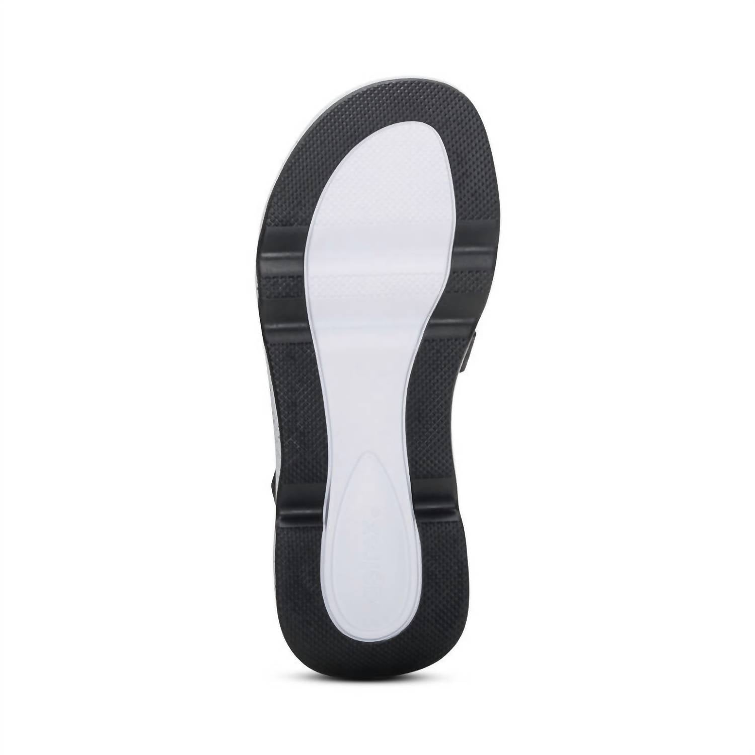 Classicly cute and all-day-wearable. We love this sandal. Experience comfort with Aetrex Women's Marz Sandal, perfect for all-day wear. Made of pink faux leather, they have a 1.85-inch wedge heel and open toe design for style and practicality. The lightweight hook & loop closures allow for an adjustable fit, while the UltraSky™ midsole and rubber outsole provide cushioning and durability. Ideal for water use, they feature a padded collar for added comfort and antimicrobial technology to prevent odors.