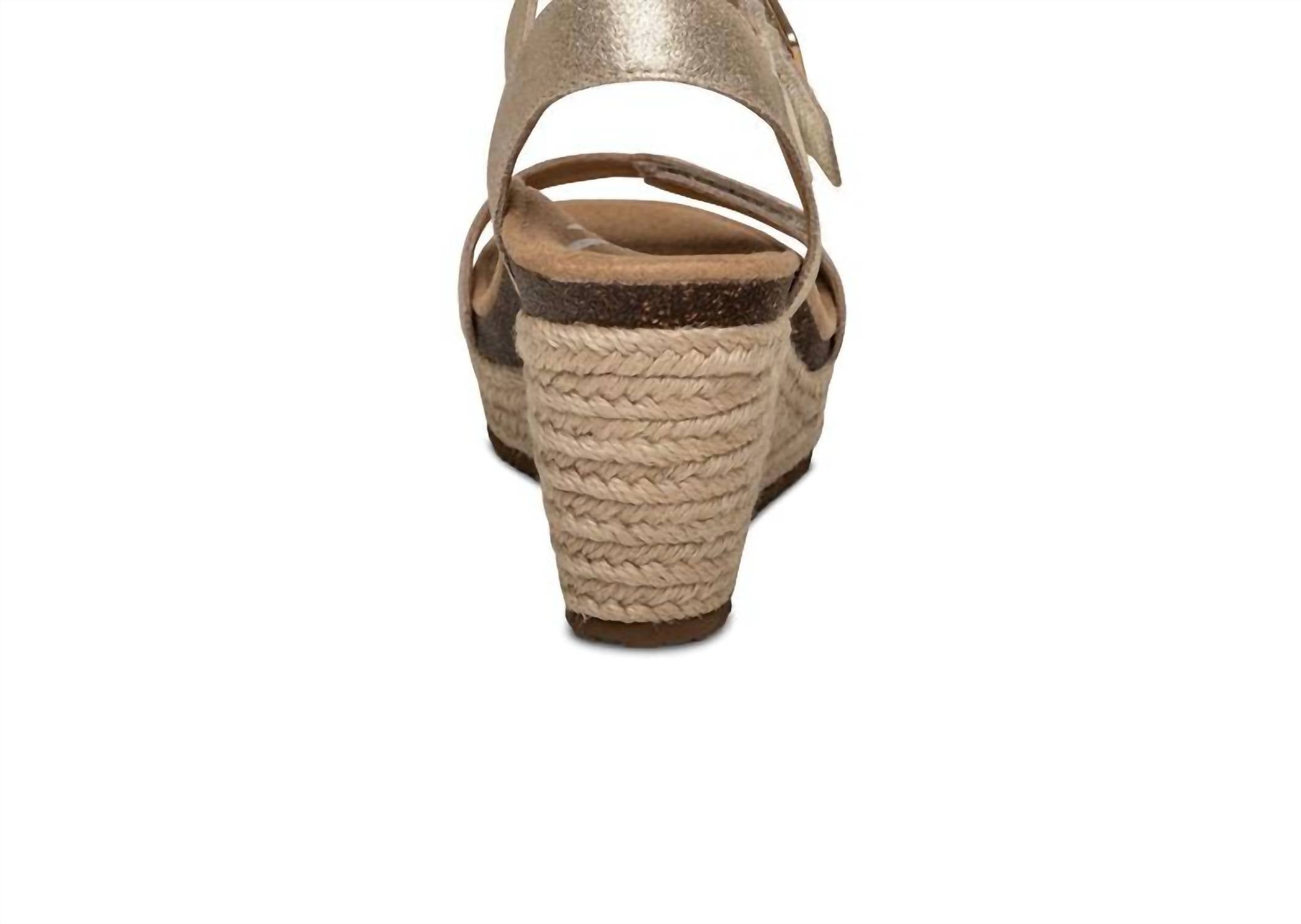 Dresses, denim, shorts... these wedges go with just about anything.Arch support helps to stabilize and align feet. Arch support helps to relieve common foot pain & plantar fasciitis. The memory foam footbed provides cushioning & comfort. Adjustability: Hook & loop closures. Upper Material: Genuine leather. Midsole Material: 8mm of memory foam cushioning, lightweight cork and jute wrapped platform. Footbed Lining Material: Soft microfiber treated with antimicrobial technology to help fight every day odors. Outsole Material: Blown rubber for lightweight durability. Removable Insole: None. Heel Height: 3".