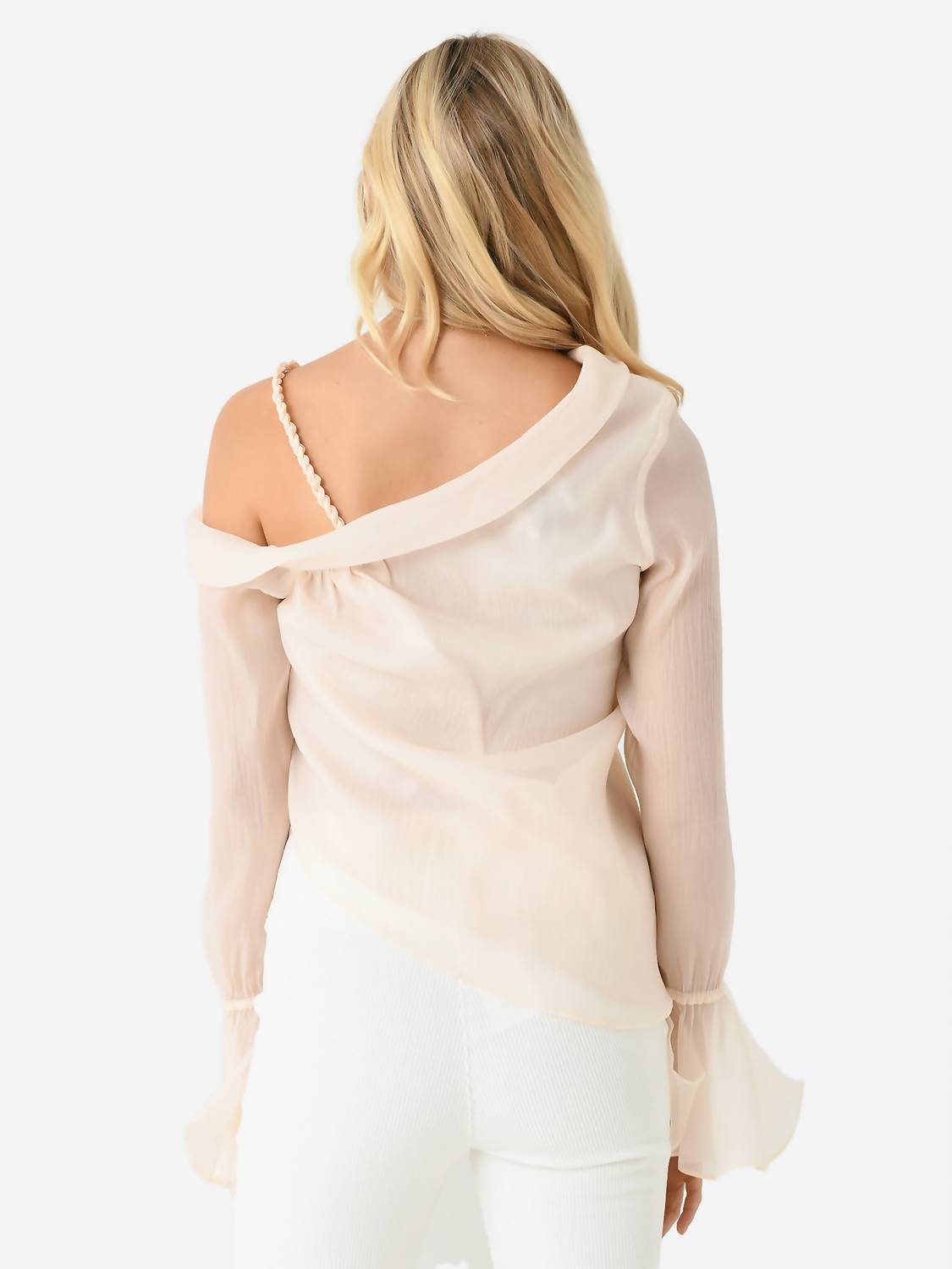 A timeless blouse that will never go out of style.The dress features an asymmetric neckline, a braided shoulder strap, extended sleeves with a hem frill, and an asymmetric hem. It is lined and made from 60% polyester and 40% polyamide. Delicate cold hand wash separately.