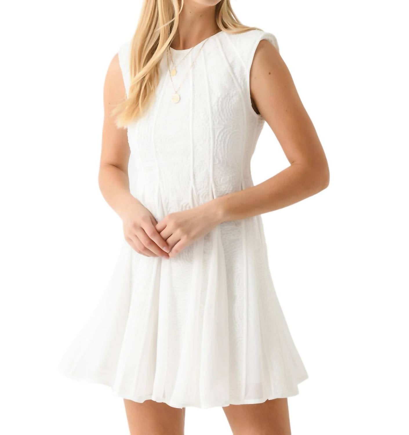 A short and breezy dress for those warmer days.This dress features a crew neckline with padded shoulders, along with panel and contrast bind detailing for a refined look. It has a flared skirt and a back V-neckline. The dress is secured with a zip and hook-and-eye closure. Made from 100% polyester, it should be dry cleaned and is true to size.