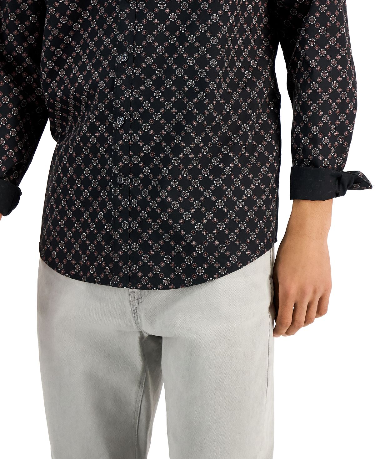 Alfani adds natural stretch and an allover crescent medal print to this long-sleeved button-down| perfect for work or weekend alike|